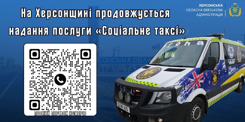 🚐 На Херсонщині продовжує діяти проєкт «Соціальне таксі». Це — безоплатна транспортна послуга для людей
