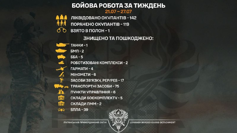 За тиждень, що минув, ними ліквідовано 142 окупанти, 119 поранено, та одного взято в полон.