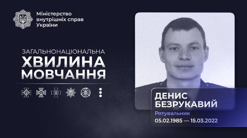 🕯Рятувальник Денис Безрукавий загинув 15 березня 2022 року в місті Маріуполь