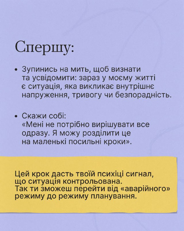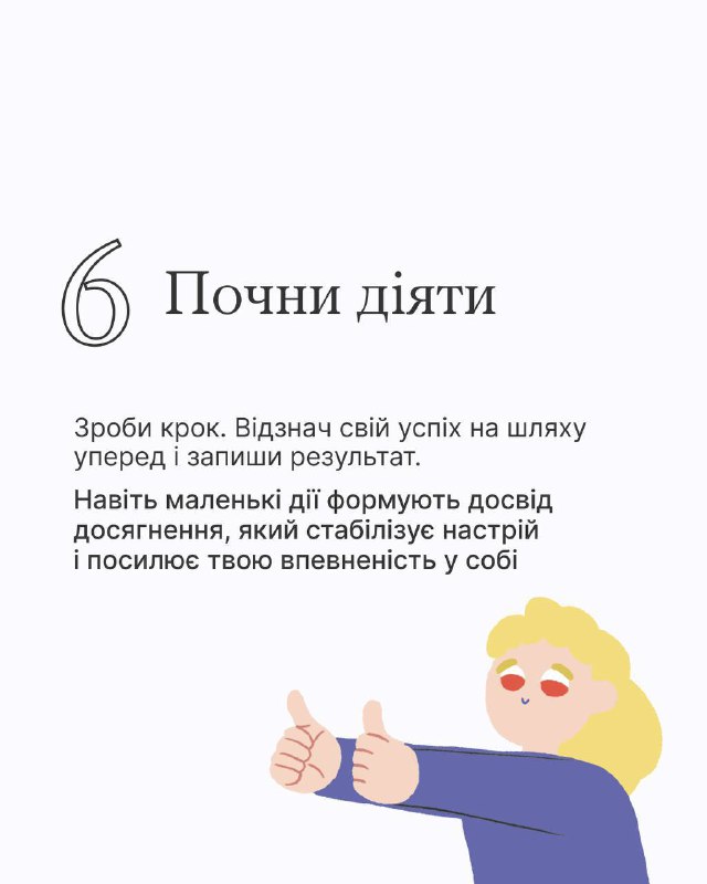 ℹ️ Повну інструкцію та інші техніки шукайте у розділі «Самодопомога» на платформі Всеукраїнської програми ментального здоров’я «Ти як?», створеній з ініціативи Першої леді Олени Зеленської.
