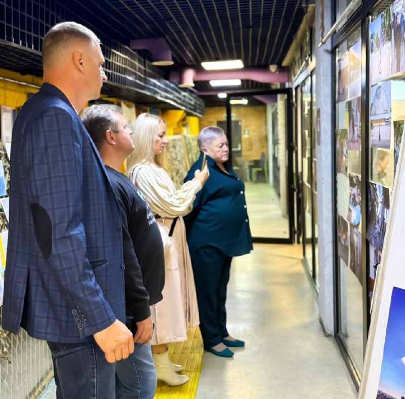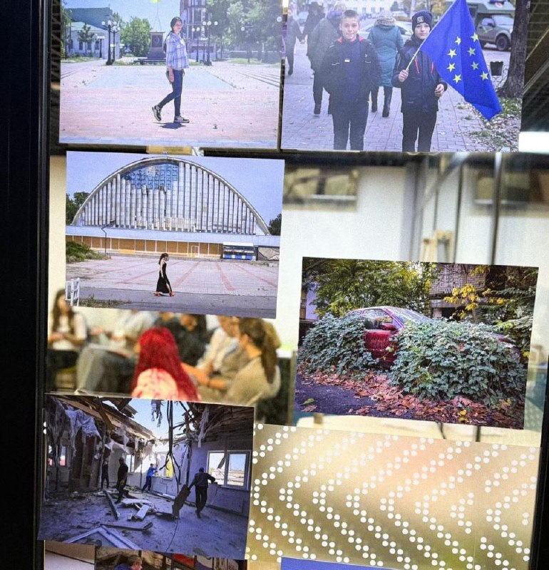 Гостей зустрічали дві виставки — фотопроєкт Олександра Корнякова «Херсон стоїть» та роботи учнів Новоолексіївського ліцею №1 «Генічеськ — місто, що живе у серцях».