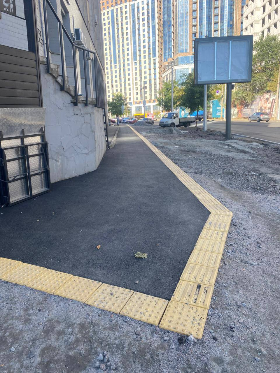Як повідомляють у Департаменті транспортної інфраструктури, на цьому об’єкті облаштовують тактильні смуги для зручної навігації, понижують бордюри на підходах до пішохідних переходів і ремонтують ділянки тротуару, які цього потребували.