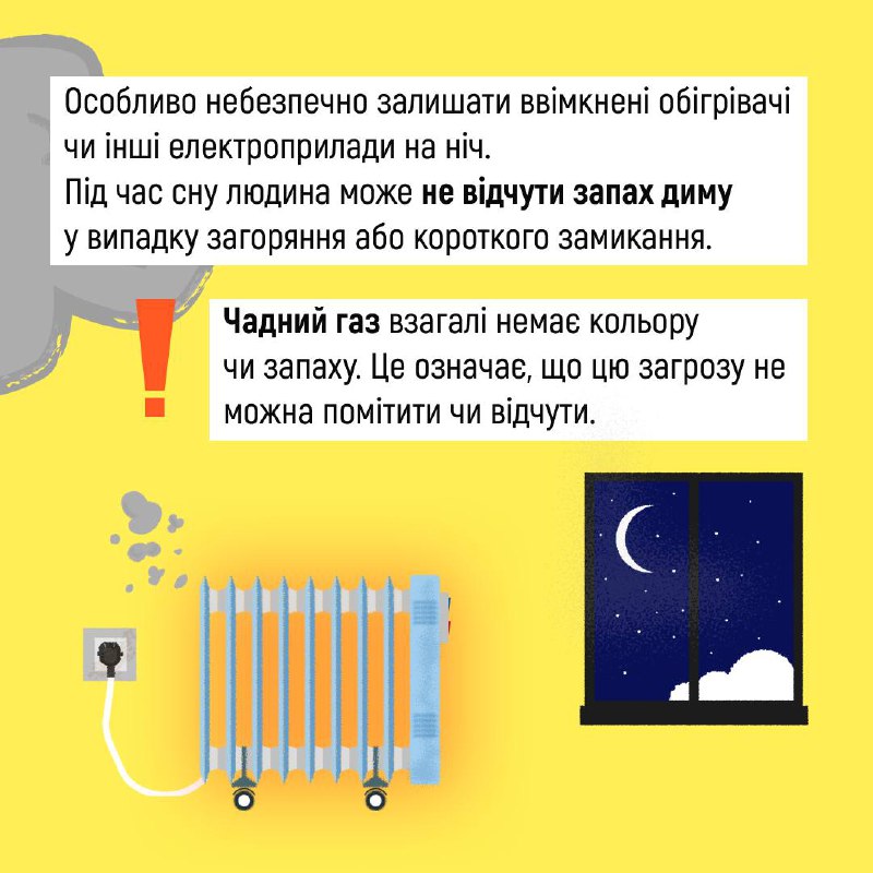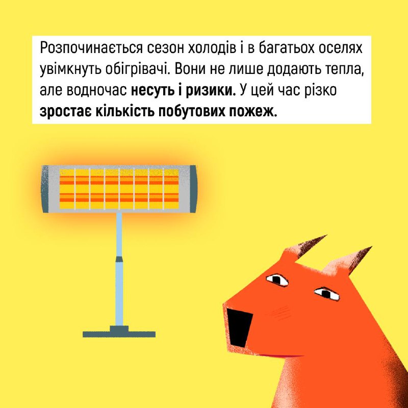 ❗️Перевірте, чи справні ваші обігрівальні прилади. А правила пожежної безпеки дивіться в картках ☝️