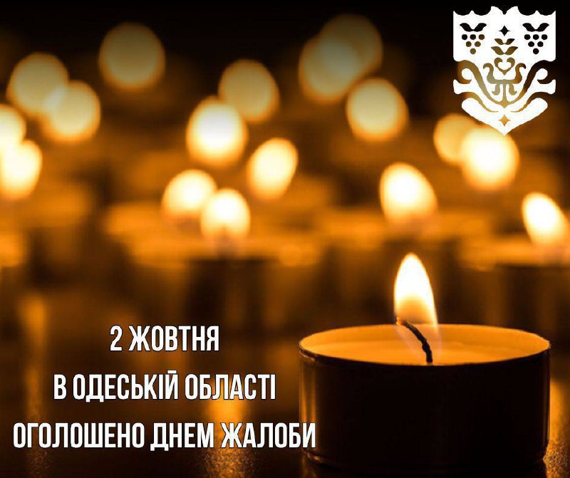 🕯️ 2 жовтня в Одеській області – День жалоби Ми втратили найдорожче — людські життя 2.10.2025, Четвер | 10:08 Автор допису: Голова Одеської обласної військової адміністрації 🕯️ 2 жовтня в Одеській області – День жалоби Ми втратили найдорожче — людські життя. Це невимовний біль і чорна сторінка для всієї Одещини. Оголосив 2 жовтня Днем жалоби. Державні Прапори приспущені, розважальні заходи обмежені. Ми разом у скорботі. Щирі співчуття рідним та близьким. Джерело Друк / PDF
