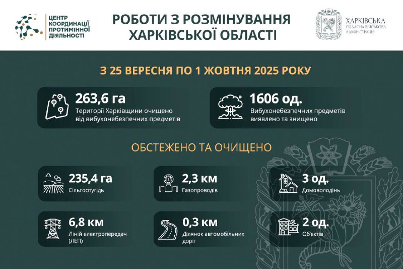 Понад 263 гектари території Харківської області розміновано за тиждень. Системну організацію заходів з розмінування…