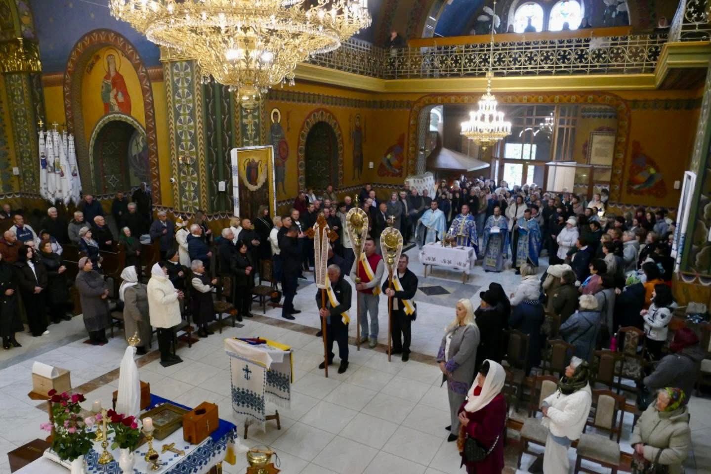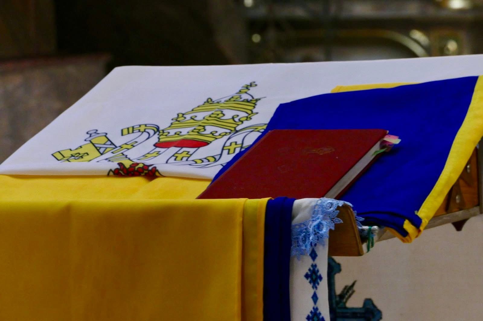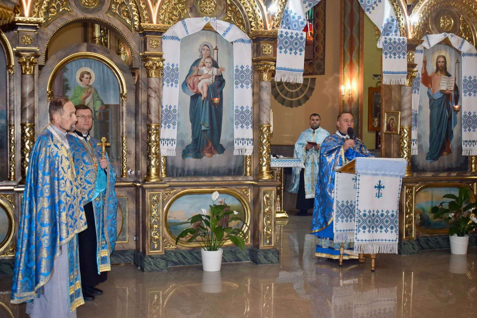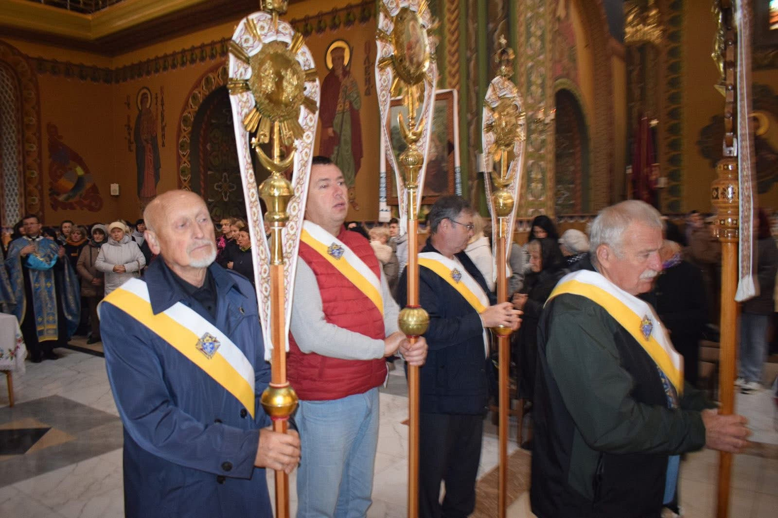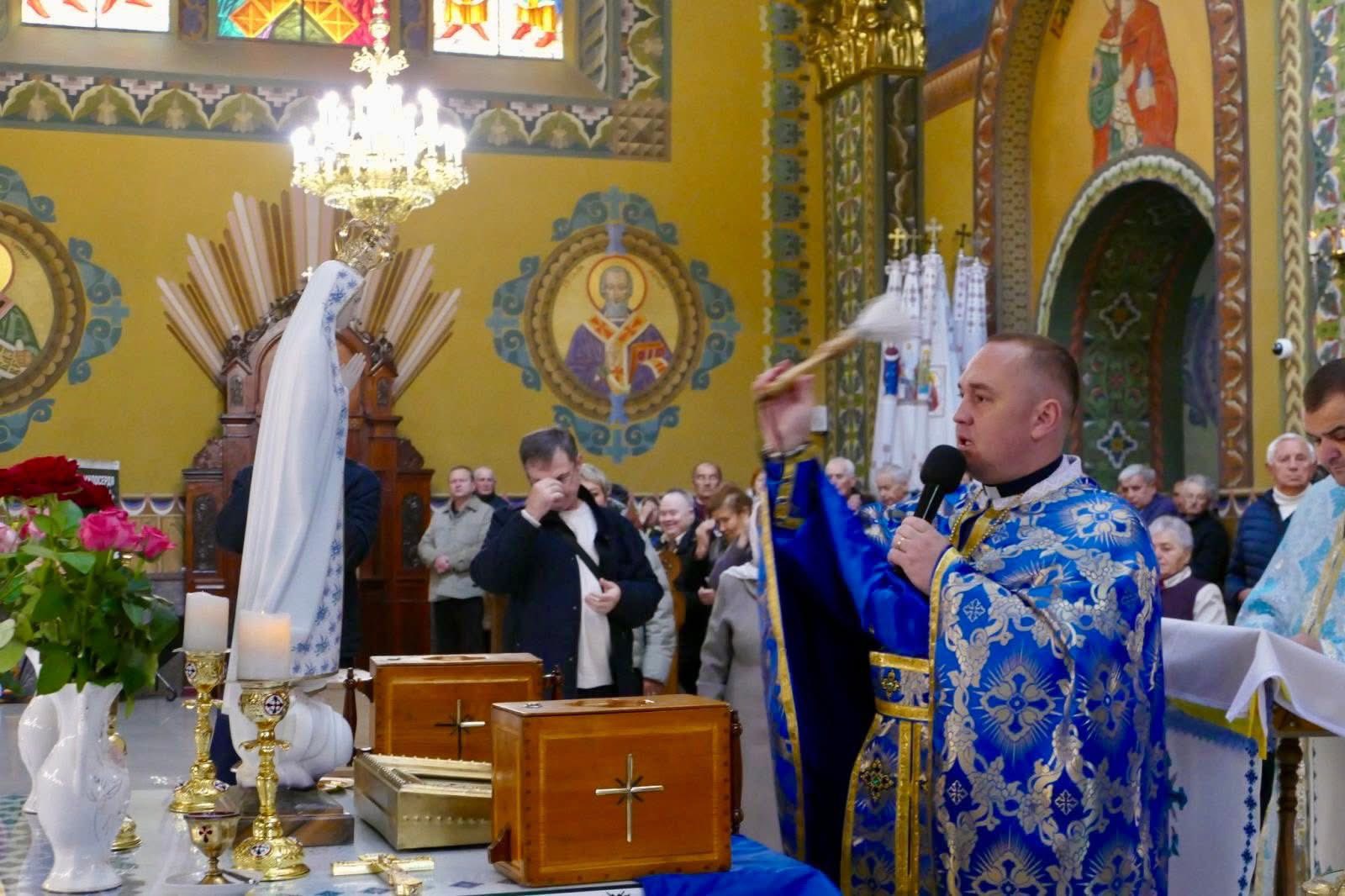 Після Літургії настоятель храму святого Архистратига Михаїла о. Іван Бігун спільно із сотрудниками парафії освятили статую Пресвятої Богородиці, яку привезли з Меджугор’є. Поблагословили також Державний прапор України та Державний прапор Ватикану, як символ приналежності до Вселенської Католицької Церкви, а відтак відслужили панахиду за полеглими Захисниками і Захисницями, які віддали життя за волю та незалежність України.