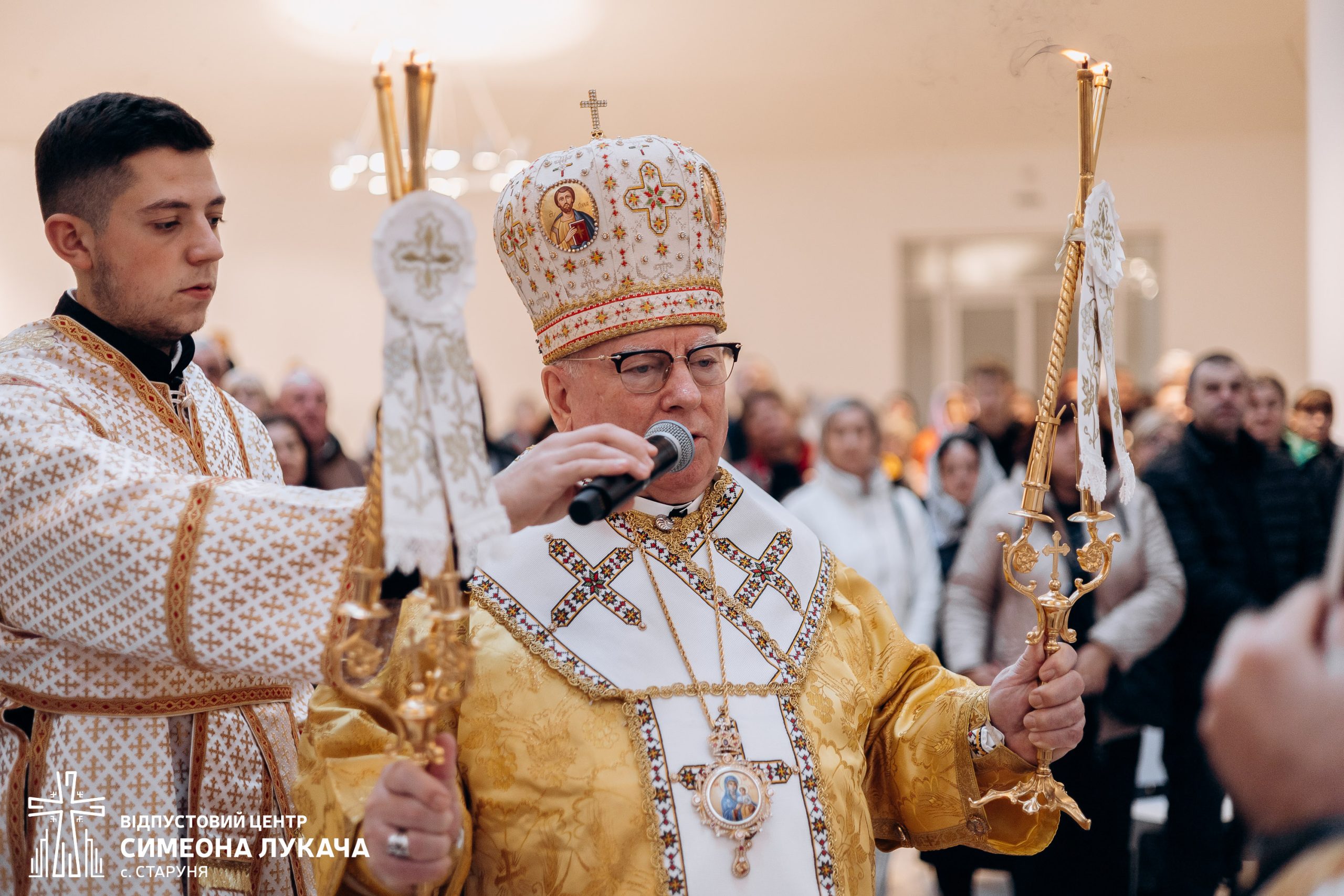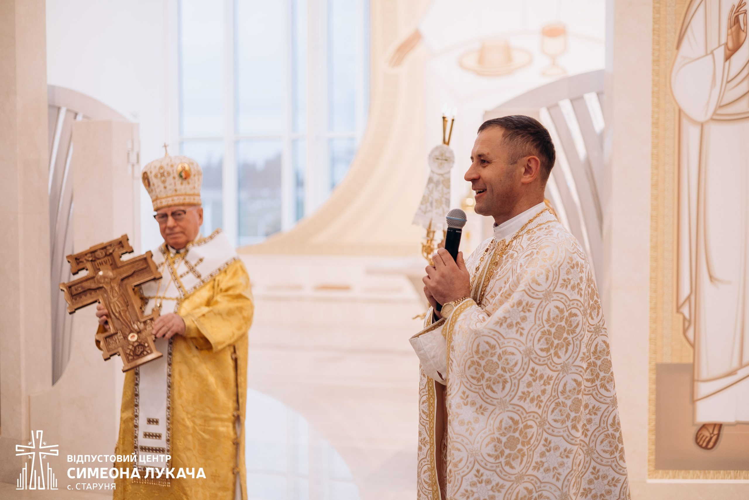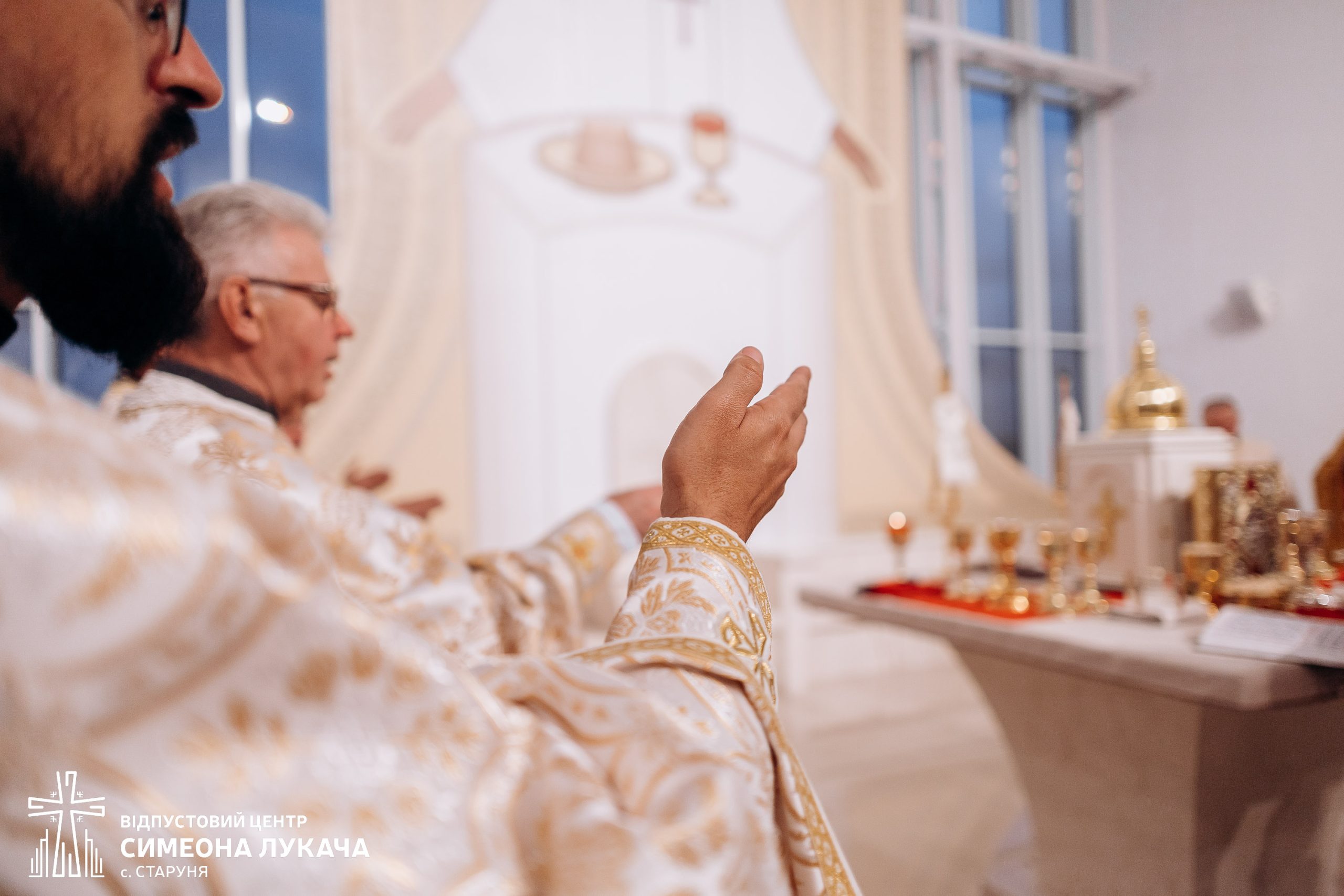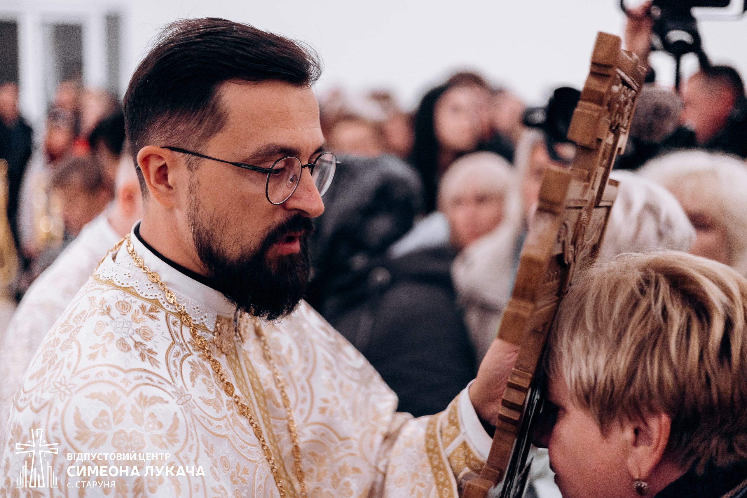 Архієрей пояснив, що часточка Хреста — це не просто деревина, а знак любові до кінця, престол Царя, який царює не насиллям, а жертвою, міст між землею і небом, двері, якими входить світло воскресіння. Тут, у Відпустовому центрі блаженного Симеона Лукача, можемо особливо відчути, що Христос не є далеким: Він у ранах воїнів, у сльозах матерів, у крові полеглих, але також у світлі воскресіння, з яким воскресне й Україна: