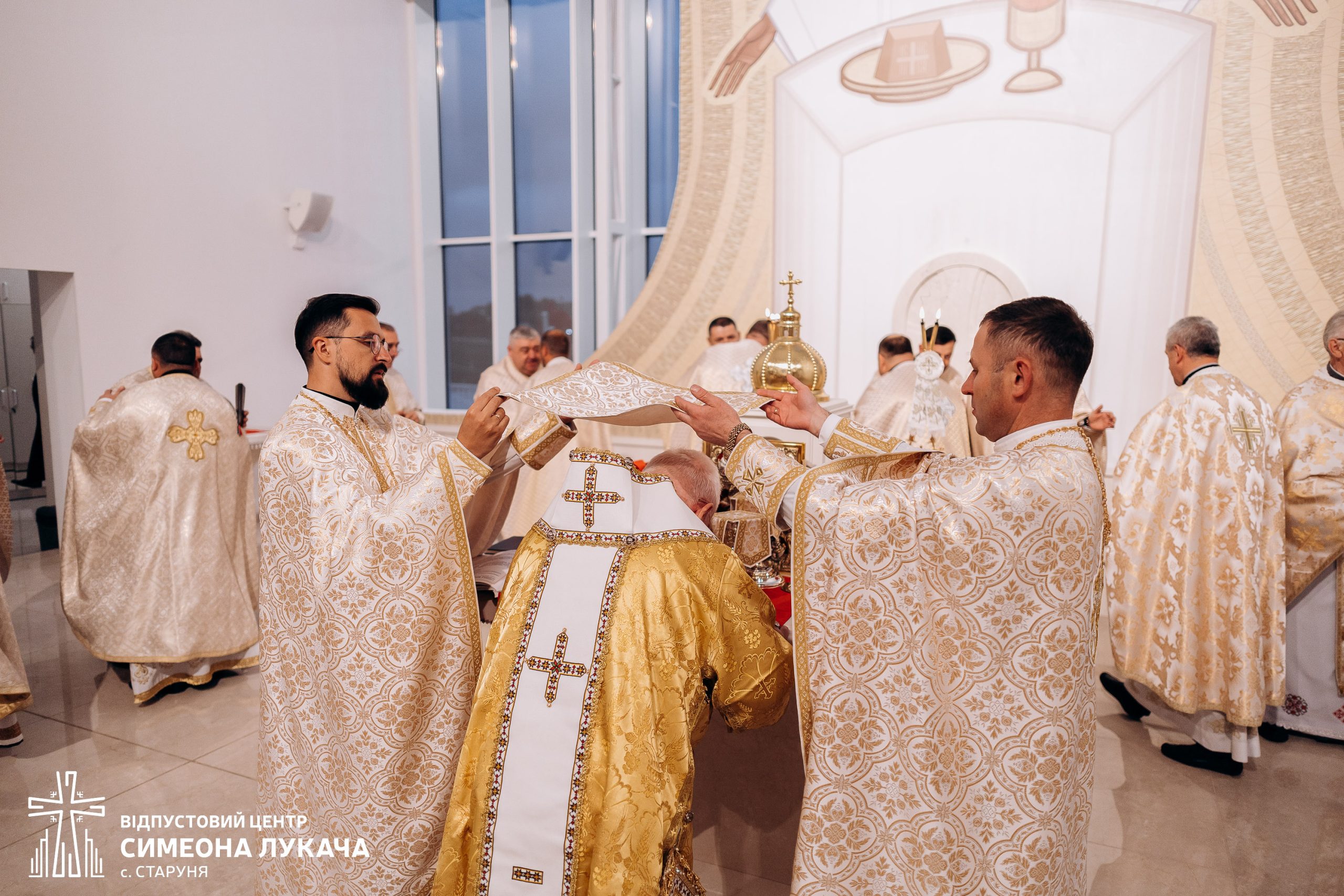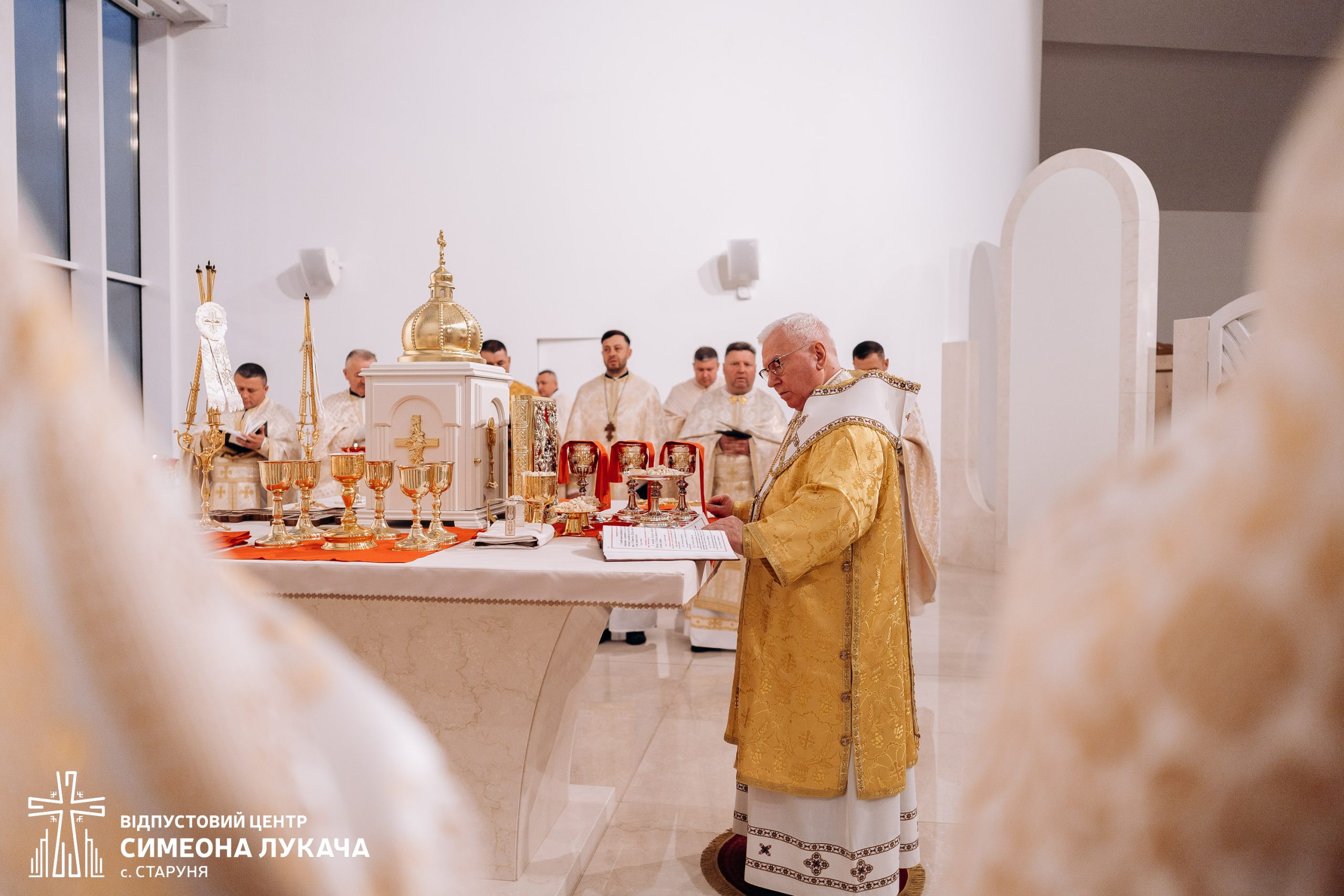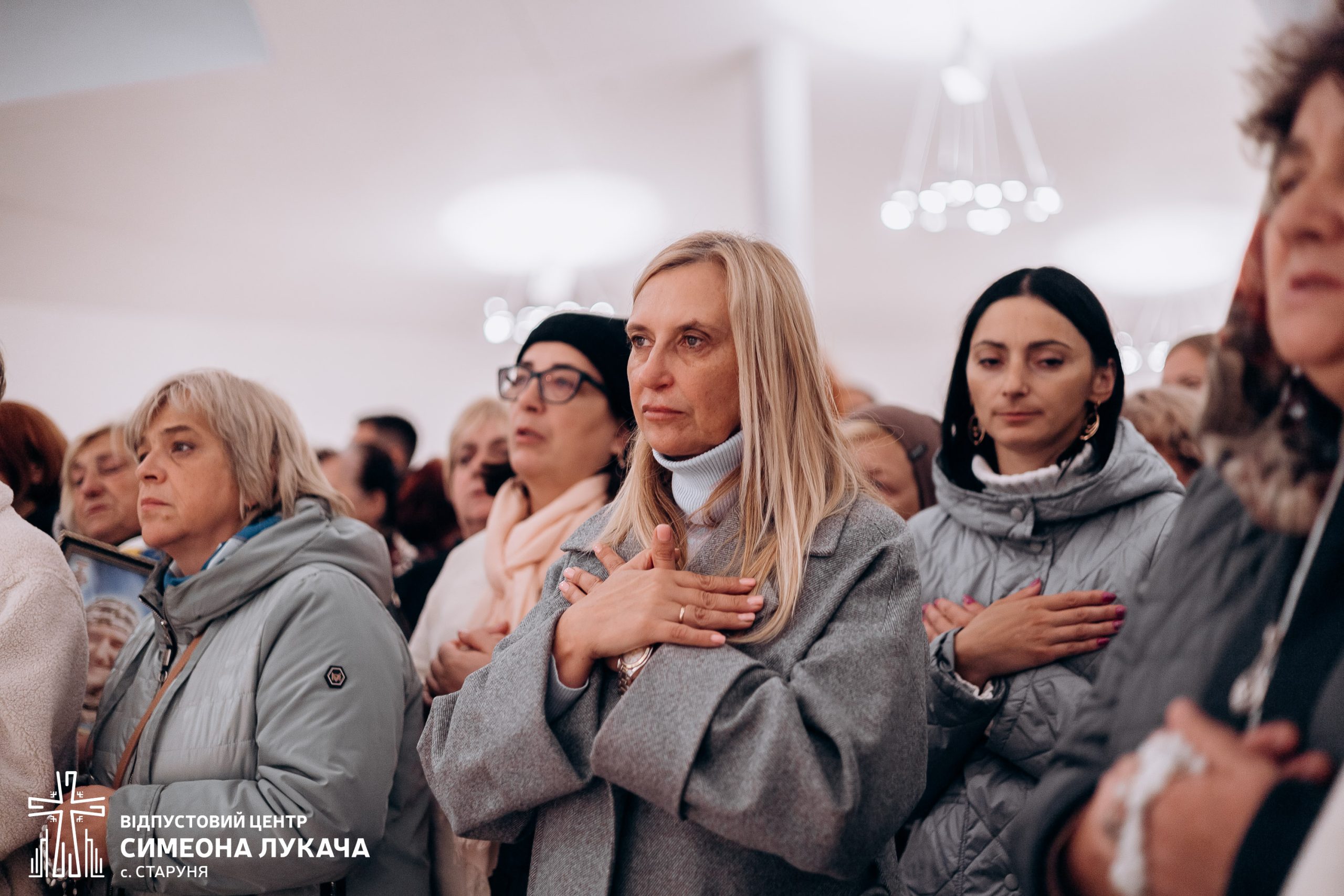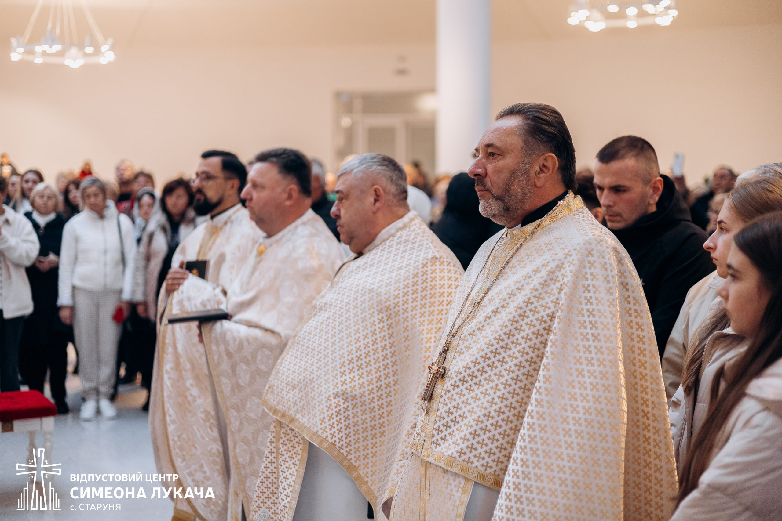 Архієрей пояснив, що часточка Хреста — це не просто деревина, а знак любові до кінця, престол Царя, який царює не насиллям, а жертвою, міст між землею і небом, двері, якими входить світло воскресіння. Тут, у Відпустовому центрі блаженного Симеона Лукача, можемо особливо відчути, що Христос не є далеким: Він у ранах воїнів, у сльозах матерів, у крові полеглих, але також у світлі воскресіння, з яким воскресне й Україна: