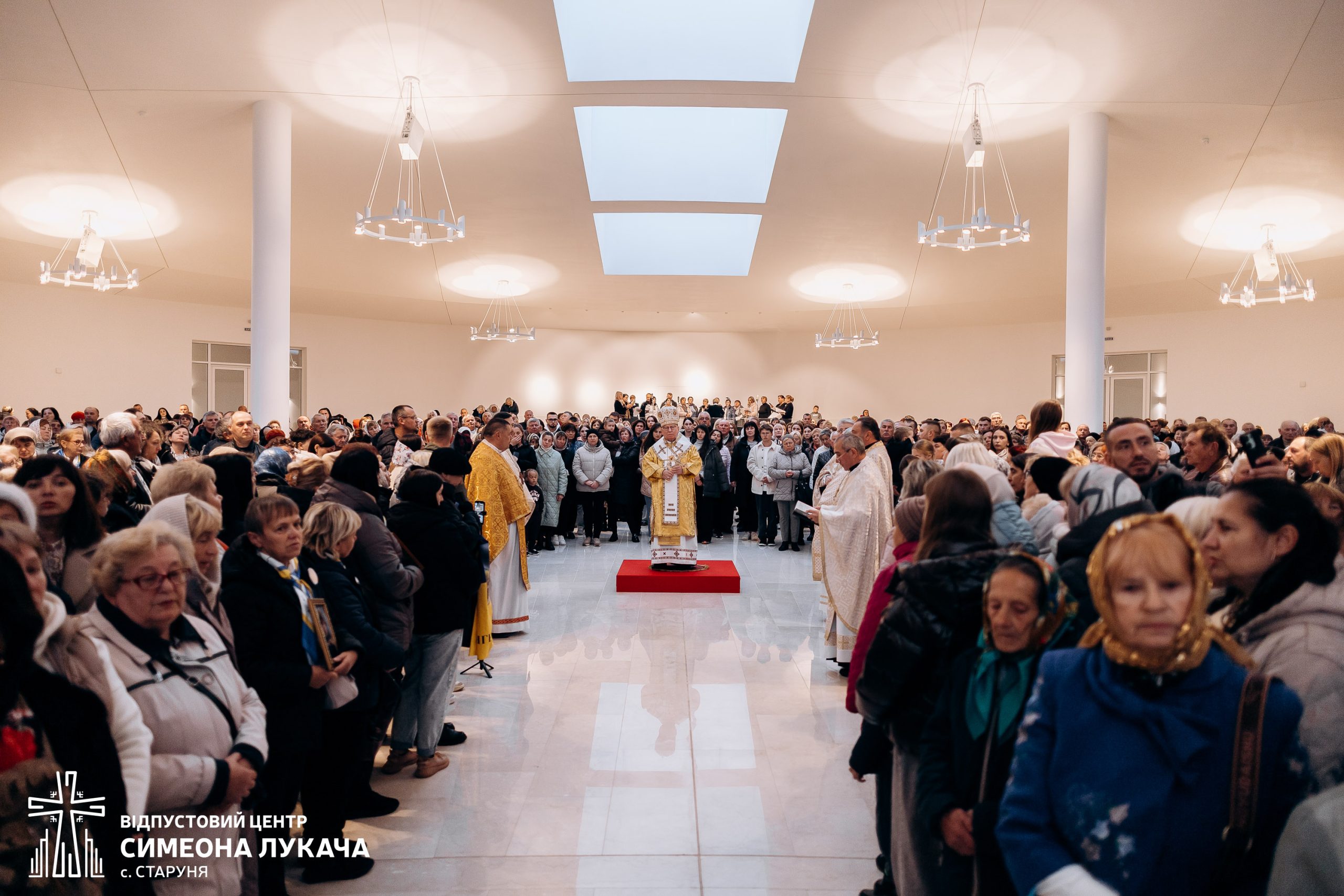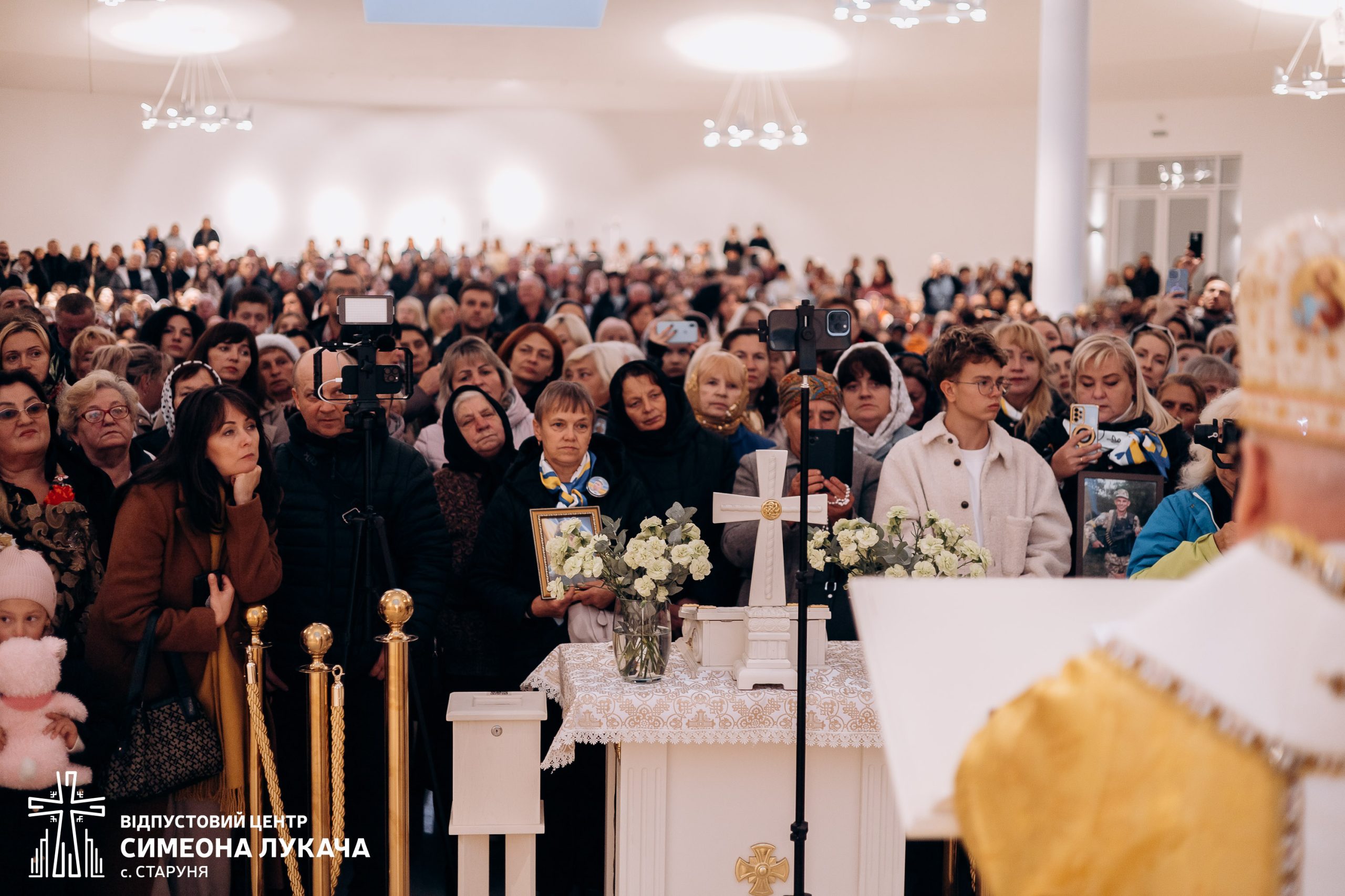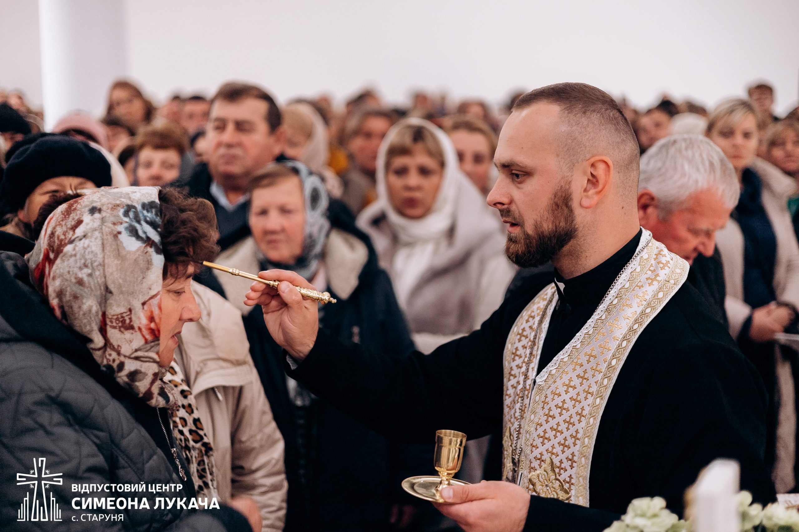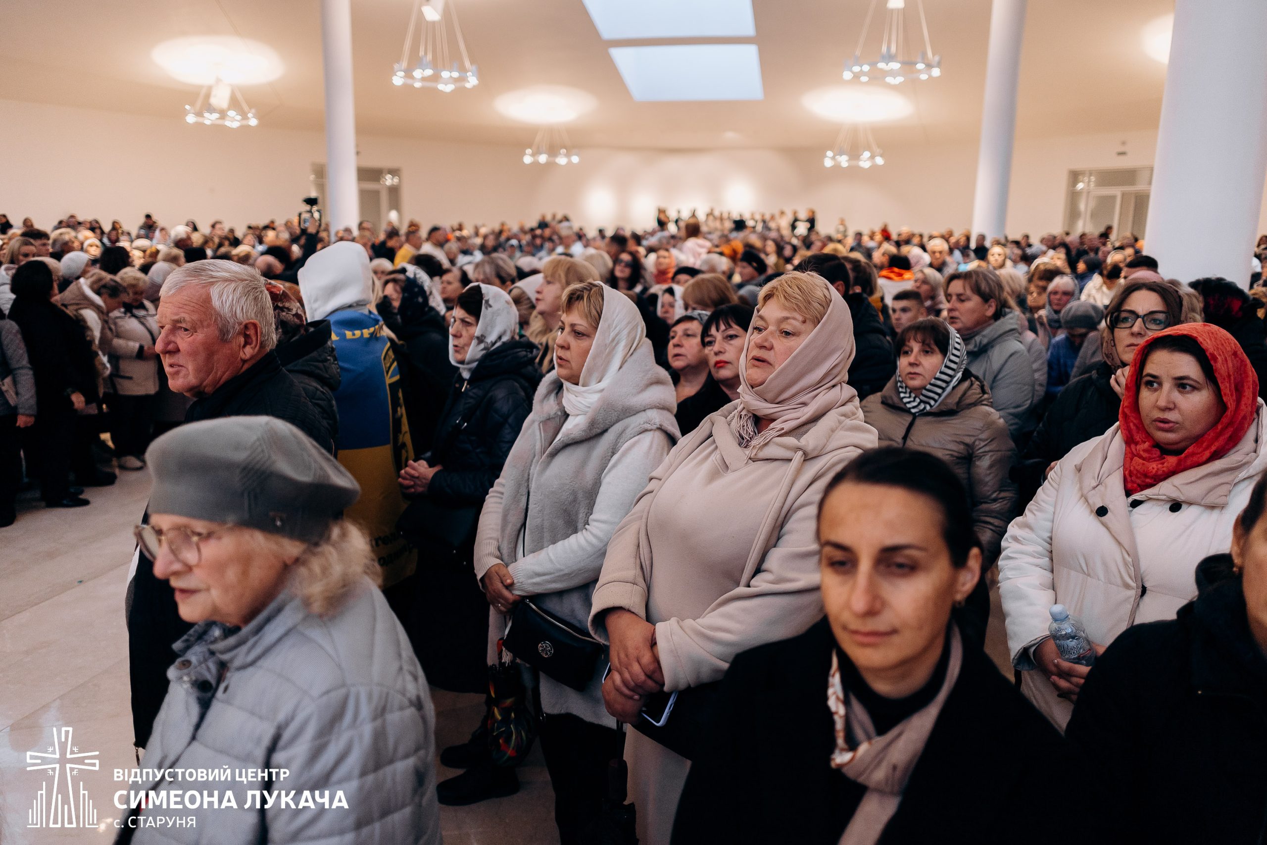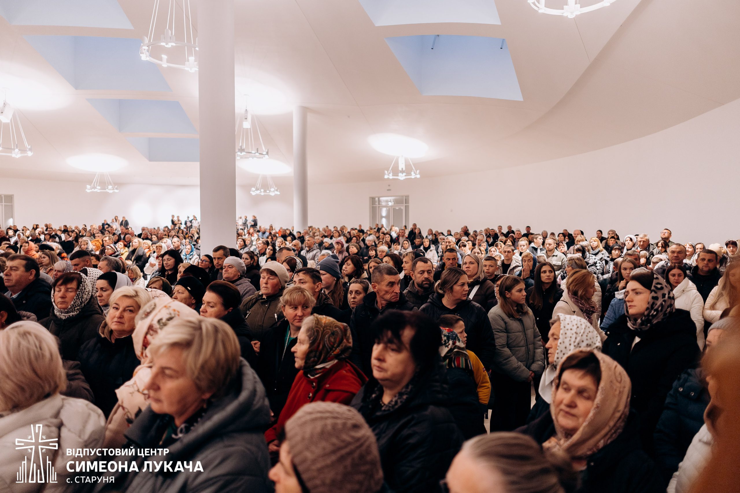 Архієрей пояснив, що часточка Хреста — це не просто деревина, а знак любові до кінця, престол Царя, який царює не насиллям, а жертвою, міст між землею і небом, двері, якими входить світло воскресіння. Тут, у Відпустовому центрі блаженного Симеона Лукача, можемо особливо відчути, що Христос не є далеким: Він у ранах воїнів, у сльозах матерів, у крові полеглих, але також у світлі воскресіння, з яким воскресне й Україна: