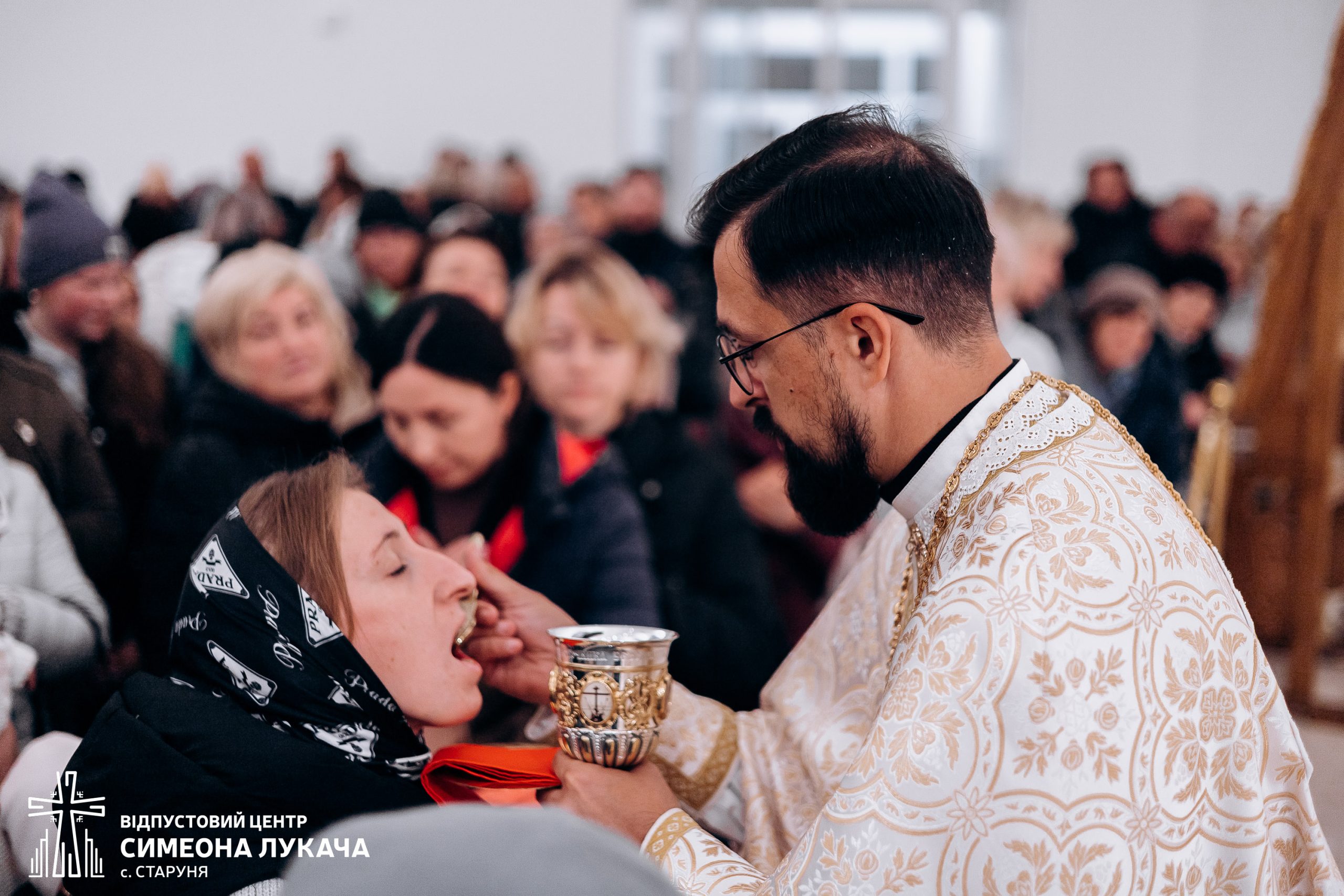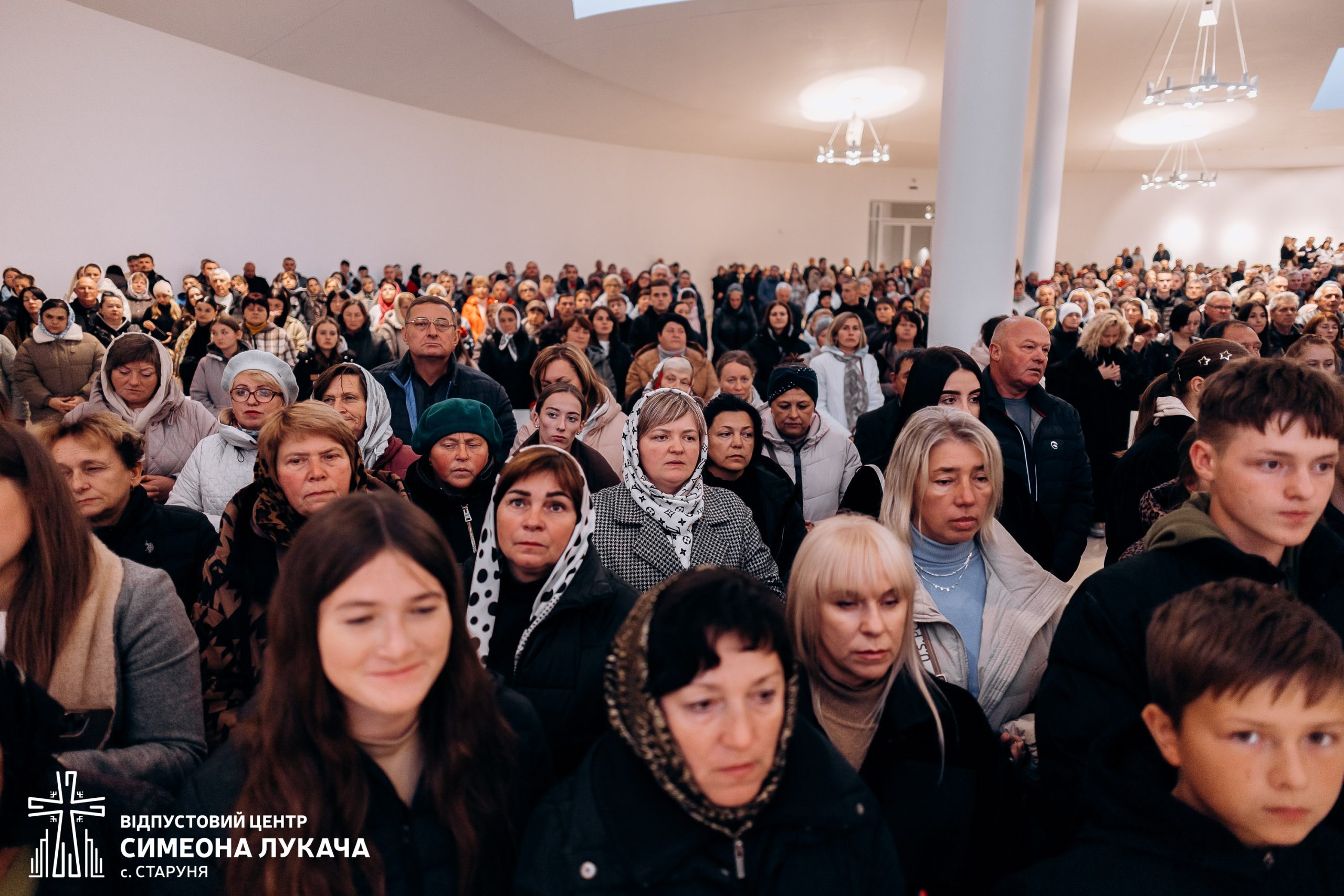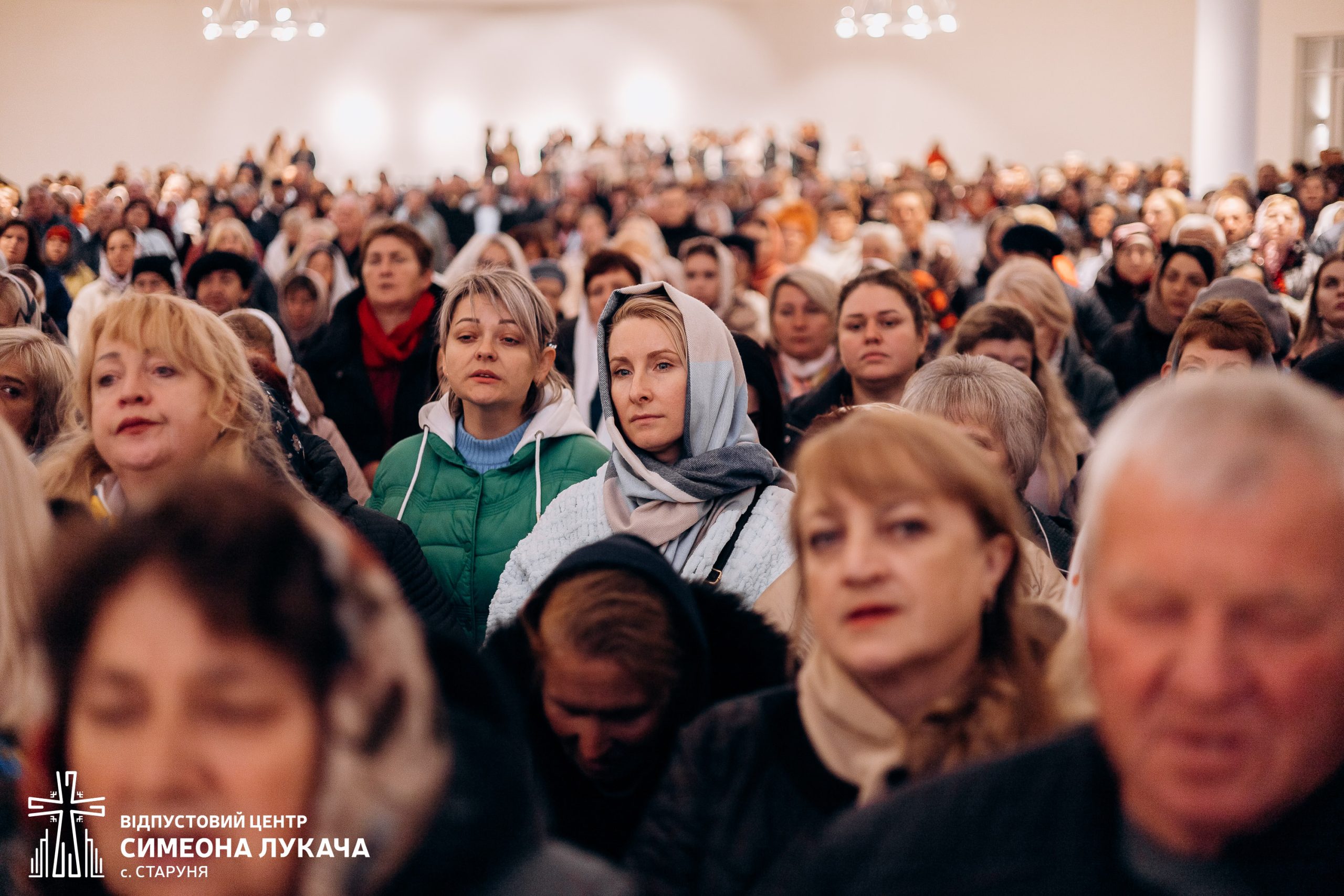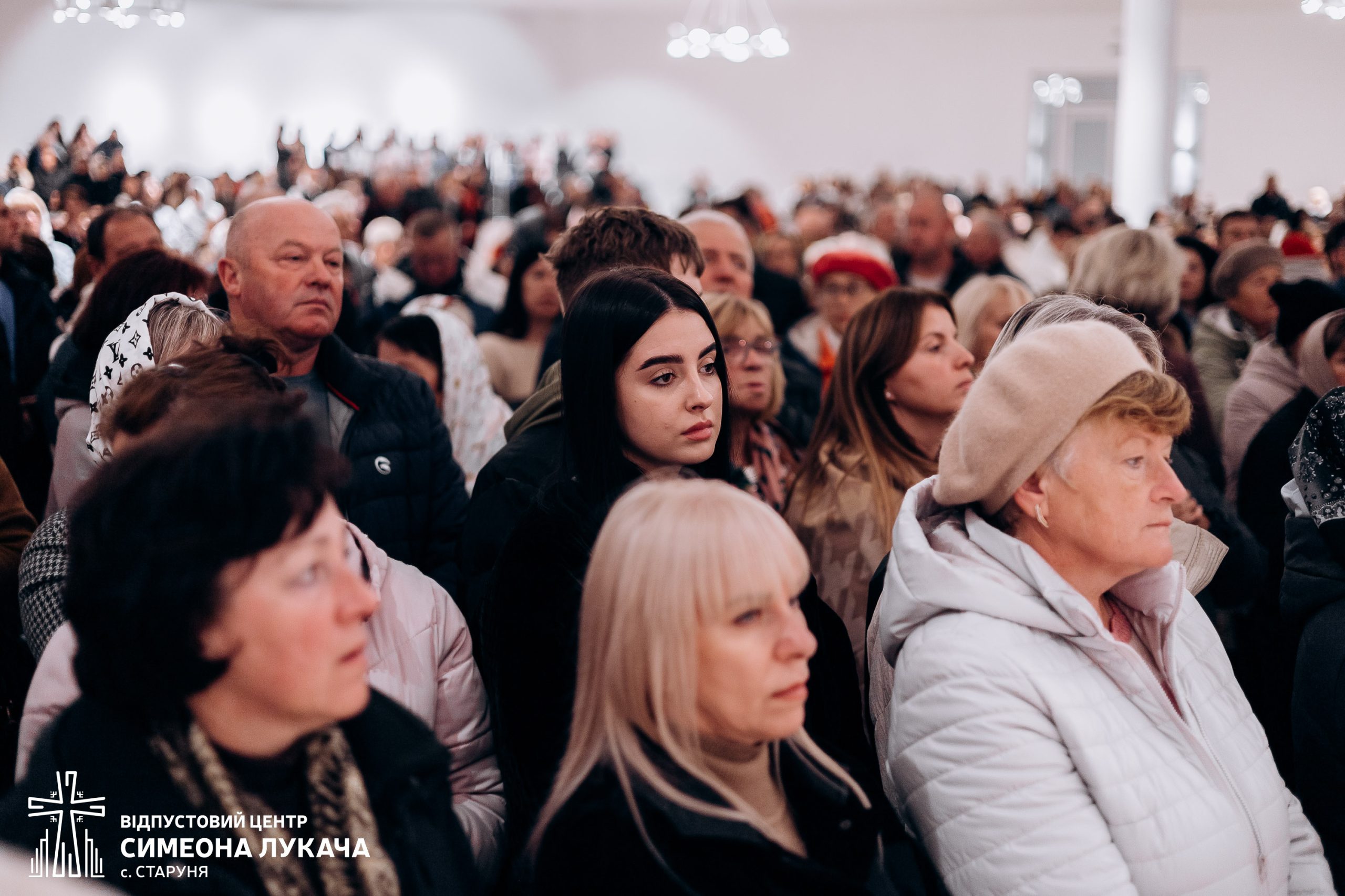 Архієрей пояснив, що часточка Хреста — це не просто деревина, а знак любові до кінця, престол Царя, який царює не насиллям, а жертвою, міст між землею і небом, двері, якими входить світло воскресіння. Тут, у Відпустовому центрі блаженного Симеона Лукача, можемо особливо відчути, що Христос не є далеким: Він у ранах воїнів, у сльозах матерів, у крові полеглих, але також у світлі воскресіння, з яким воскресне й Україна:
