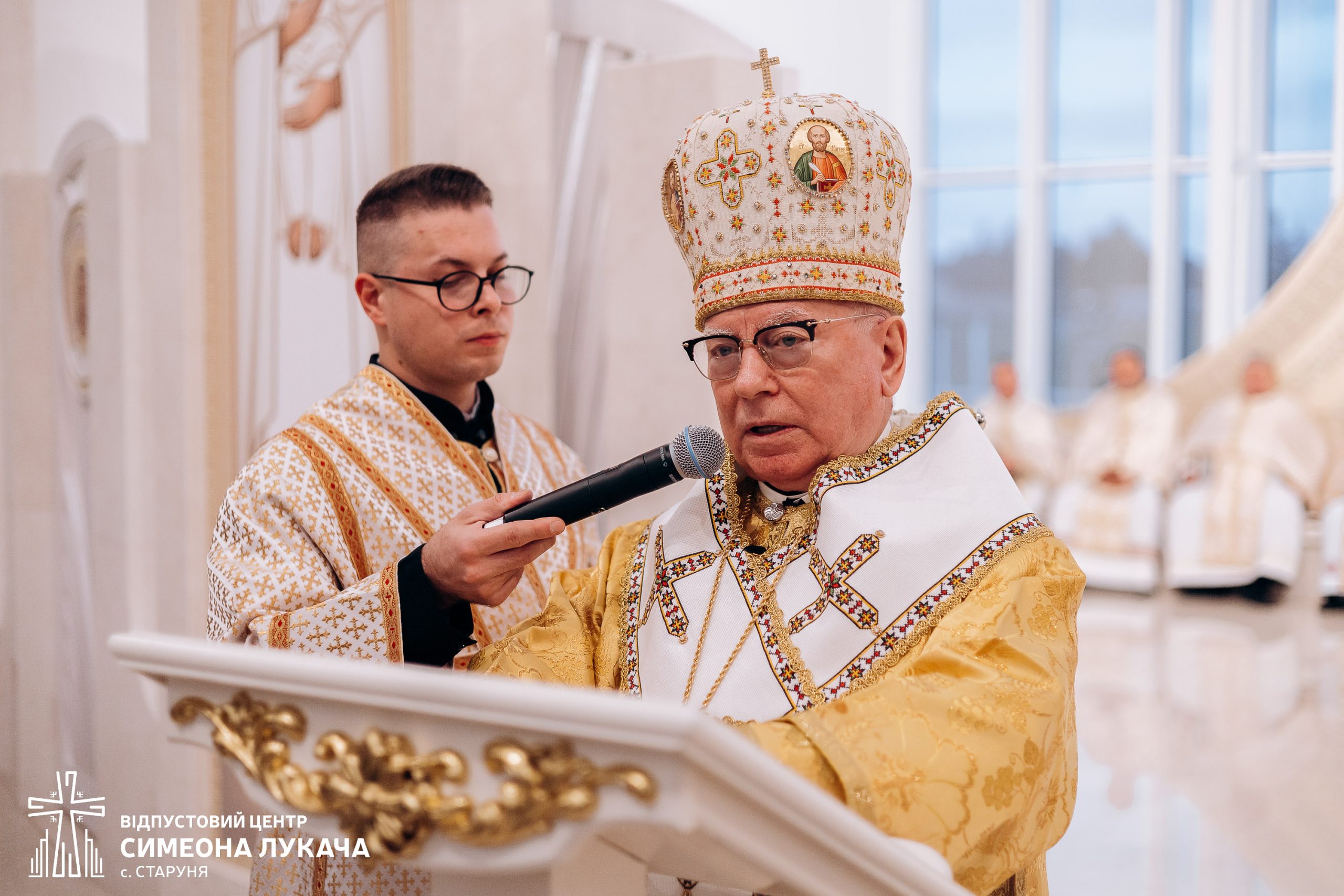 «Місце, де ми перебуваємо, промовляє до нас, — сказав Єпископ-емерит. — Старуня пам’ятає гоніння й репресії, а постать блаженного Симеона Лукача, який до кінця ніс свій хрест як ісповідник і мученик, нагадує нам, що сьогодні Хрест Господній зустрічається з хрестом Симеона Лукача, а через нього — з хрестом усього нашого народу».