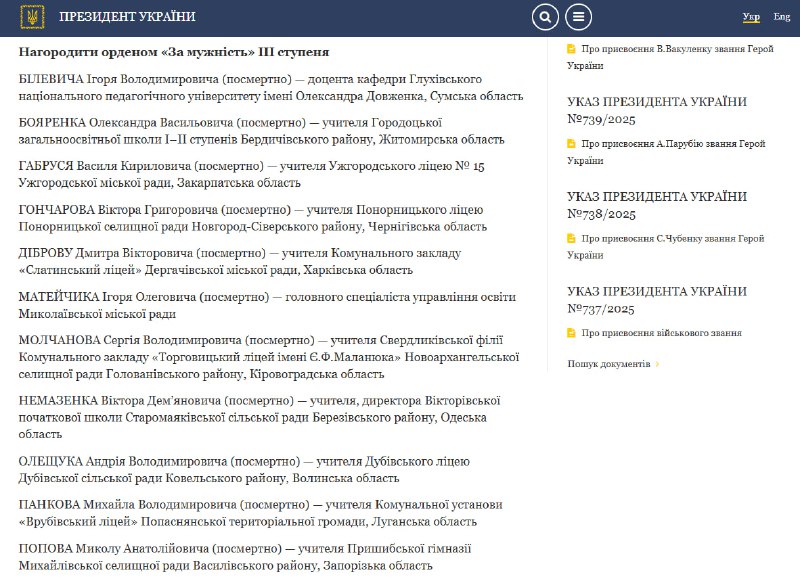 🇺🇦 Напередодні Дня працівника освіти Президент України відзначив державними нагородами освітян Житомирщини, які своїм життям і працею творять майбутнє країни.
