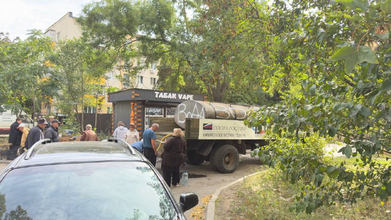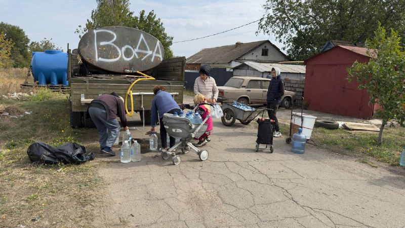 😥У селищі Садки в Кальміуському районі міста води немає вже більше двох тижнів. Людям показово підвезли кілька разів воду у цистернах, проте це не вирішує проблеми.