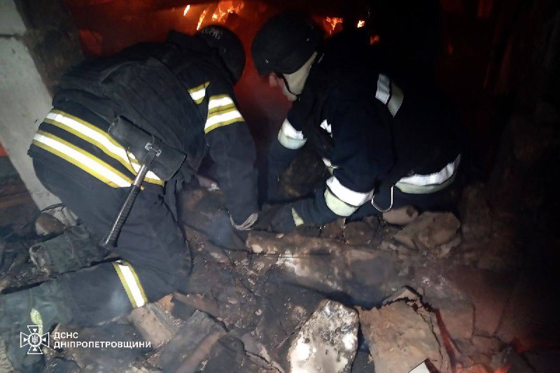 У ніч на 4 жовтня ворог атакував Дніпропетровщину. ▫️Дніпро — пошкоджено інфраструктуру, у Павлограді після ракетної атаки постраждалих немає. 4.10.2025, Субота | 8:24 Автор допису: Державна служба з надзвичайних ситуацій У ніч на 4 жовтня ворог атакував Дніпропетровщину. ▫️Дніпро — пошкоджено інфраструктуру, у Павлограді після ракетної атаки постраждалих немає. ▫️Покровська громада Синельниківського району — поранено 51-річну жінку, знищено приватний будинок, ще два пошкоджено, горіла госпспоруда. ▫️Межівській громаді через влучання БпЛА загорівся гараж — пожежу ліквідували. ▫️У Нікопольському районі обстріляли Покровську громаду — без жертв. До ліквідації наслідків залучалися 22 рятувальники та 5 одиниць техніки. Джерело Друк / PDF