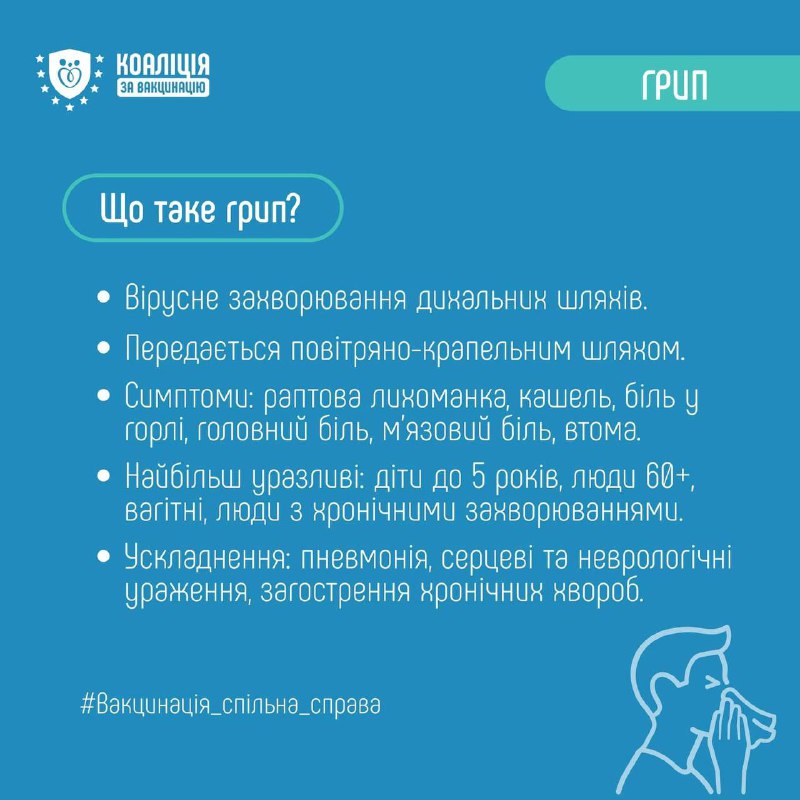 Грип — це не просто сезонна застуда, а серйозне захворювання, яке може бути небезпечним, особливо для людей із груп ризику.