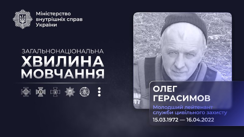 🕯Рятувальник Олег Герасимов загинув 16 квітня 2022 року на Харківщині під час вилучення та ліквідації вибухонебезпечних предметів