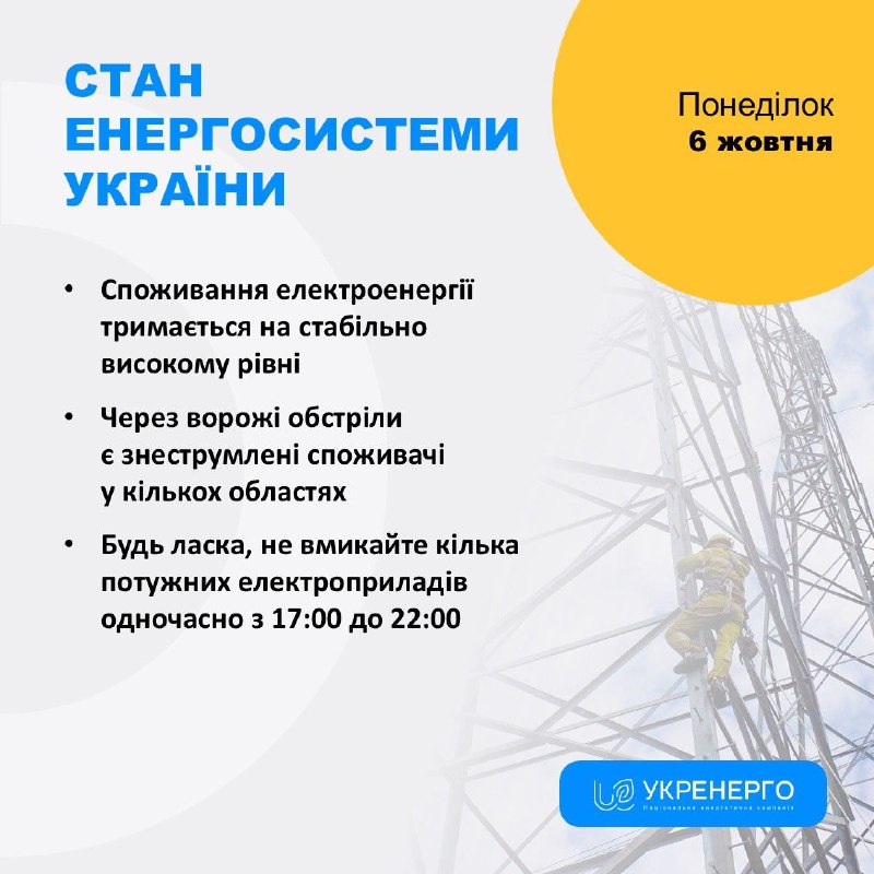 Увага! Ситуація в енергосистемі може змінюватись. Стежте за повідомленнями на сайтах та офіційних сторінках у соцмережах вашого оператора системи розподілу (обленерго).
