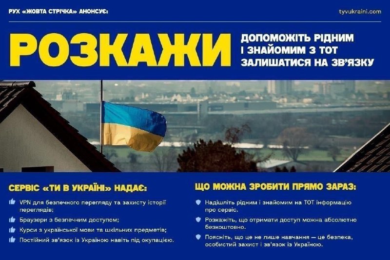 👉 Маєте знайомих, друзів чи рідних на тимчасово окупованих територіях – передайте їм це посилання: https://tyvukraini.com/