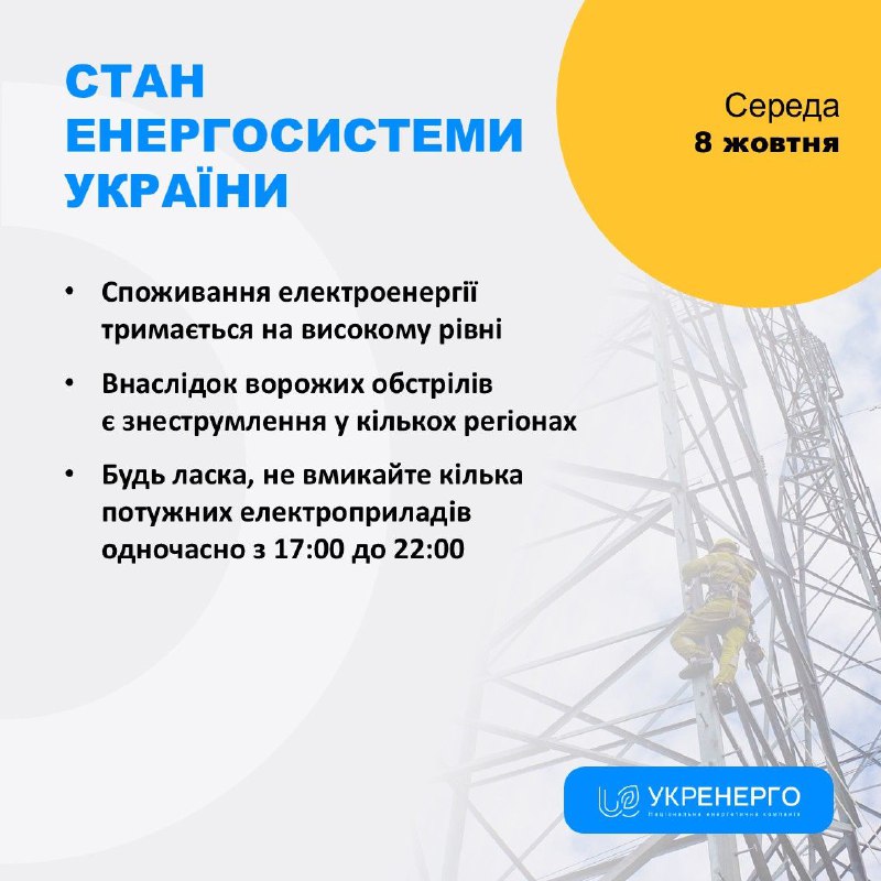 Увага! Ситуація в енергосистемі може змінюватись. Стежте за повідомленнями на сайтах та офіційних сторінках у соцмережах вашого оператора системи розподілу (обленерго).