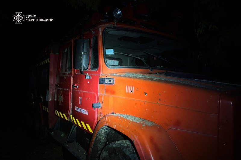 #Чернігівщина: внаслідок повторного російського обстрілу пошкоджена техніка підрозділу ДСНС та пожежної команди у селі Жадове Новгород-Сіверського району