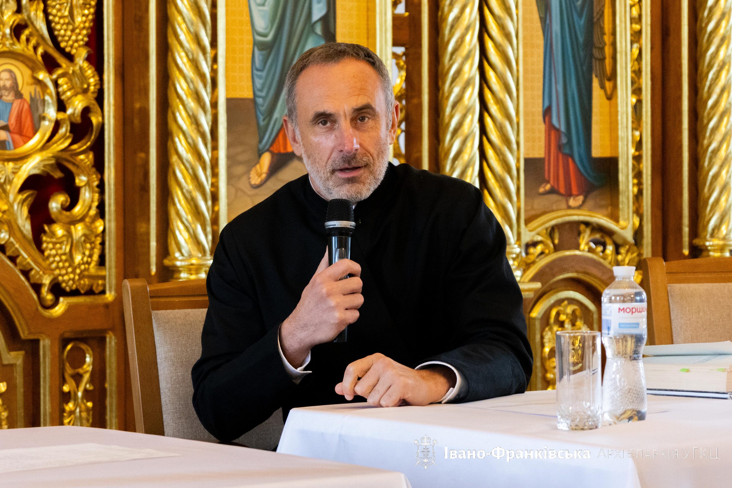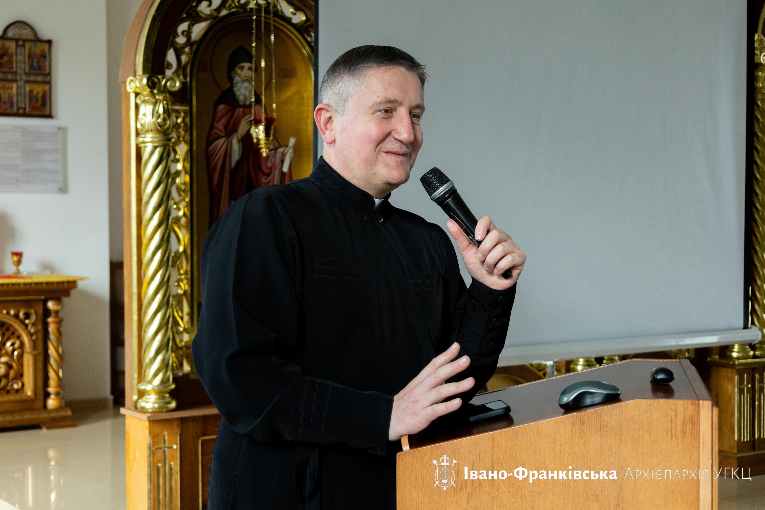 Згодом слово мав о. Василь Качмарський, голова катехитичної комісії, який детальніше розповів про практичні аспекти євангелізації й катехизації у парафіях, акцентуючи увагу на важливості особистого внеску священника у життя громади.