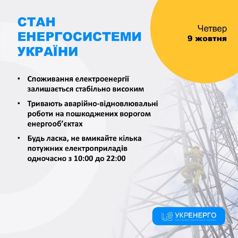 Увага! Ситуація в енергосистемі може змінюватись. Стежте за повідомленнями на сайтах та офіційних сторінках у соцмережах вашого оператора системи розподілу (обленерго).