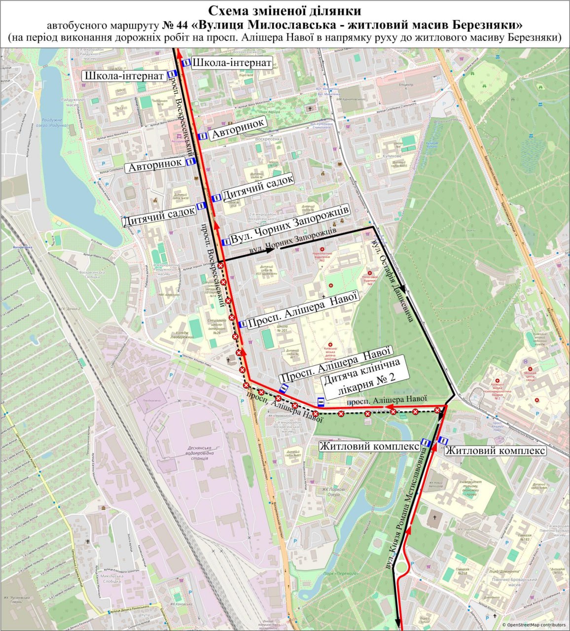 Цими вихідними, 12 та 13 жовтня, внесуть зміни в маршрут автобуса № 44 через дорожні роботи на просп. Алішера Навої. Про це повідомляють у КП «Київпастранс».