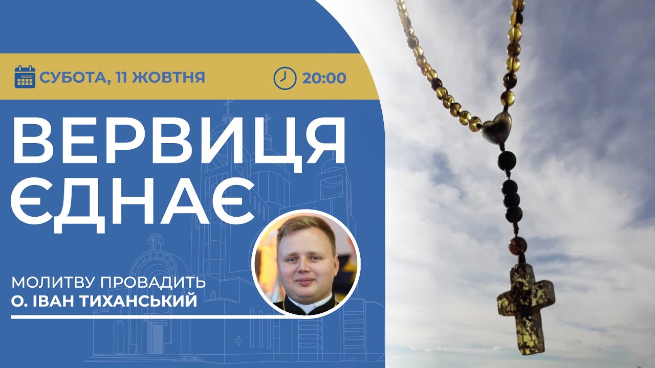 11 жовтня молитву на вервиці в рамках ініціативи «Вервиця єднає» буде провадити о. Іван Тиханський з Паломницького центру Богородична святиня села Товмачик на Івано-Франківщині. Початок молитви о 20-00 за київським часом.