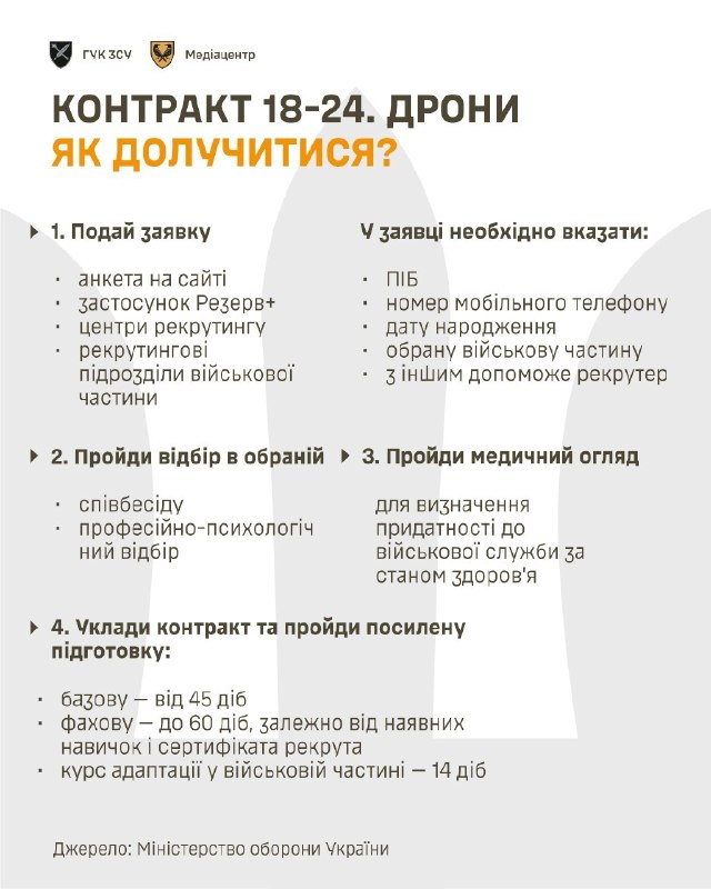 Новий контракт для нового тебе! Приєднуйся до найкращих. 🟢 18-24.army.gov.ua/ 12.10.2025, Неділя | 10:10 Автор допису: Військово-Морські Сили Збройних Сил України Новий контракт для нового тебе! Приєднуйся до найкращих. 🟢 18-24.army.gov.ua/🟢 lfrecruiting.com.ua/18-24🟢 Резерв+ Збройні Сили України / The Armed Forces of Ukraine Джерело Друк / PDF