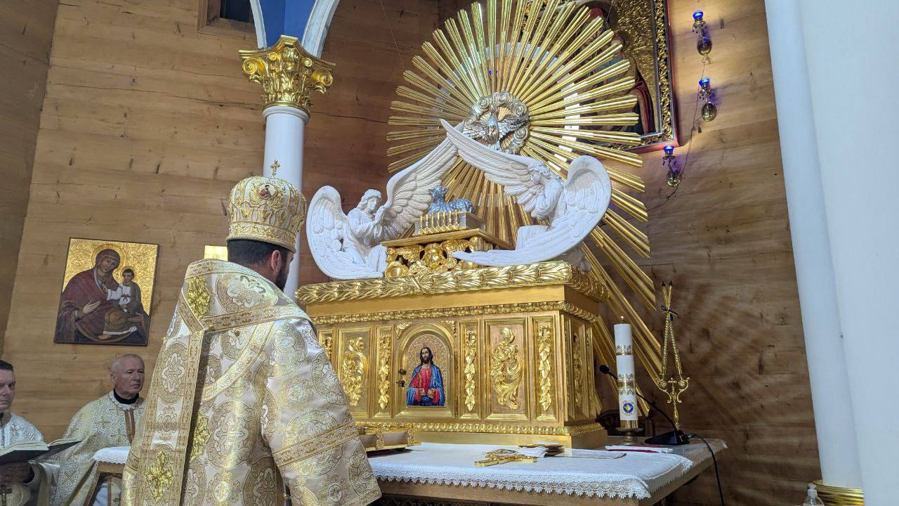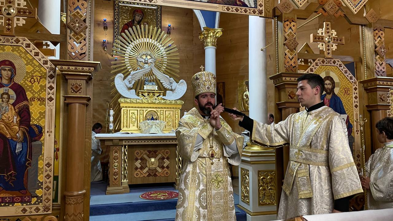 Цього дня Владику на парафіяльному подвір’ї чисельно вітали діти, молодь, вірні та гості парафії, представники влади, а також духовенство. Відтак присутні процесійно вирушили до храму, де розпочалася Архієрейська Божественна Літургія.