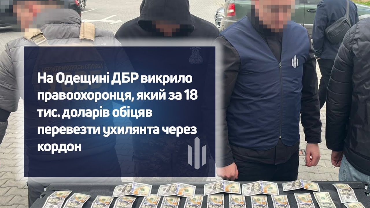 Працівники ДБР у взаємодії з СБУ та УВВБ Держприкордонслужби викрили в Одеській області правоохоронця зі спільником, які хотіли за 18 тис. доларів США перевезти чоловіка через кордон до Молдови.