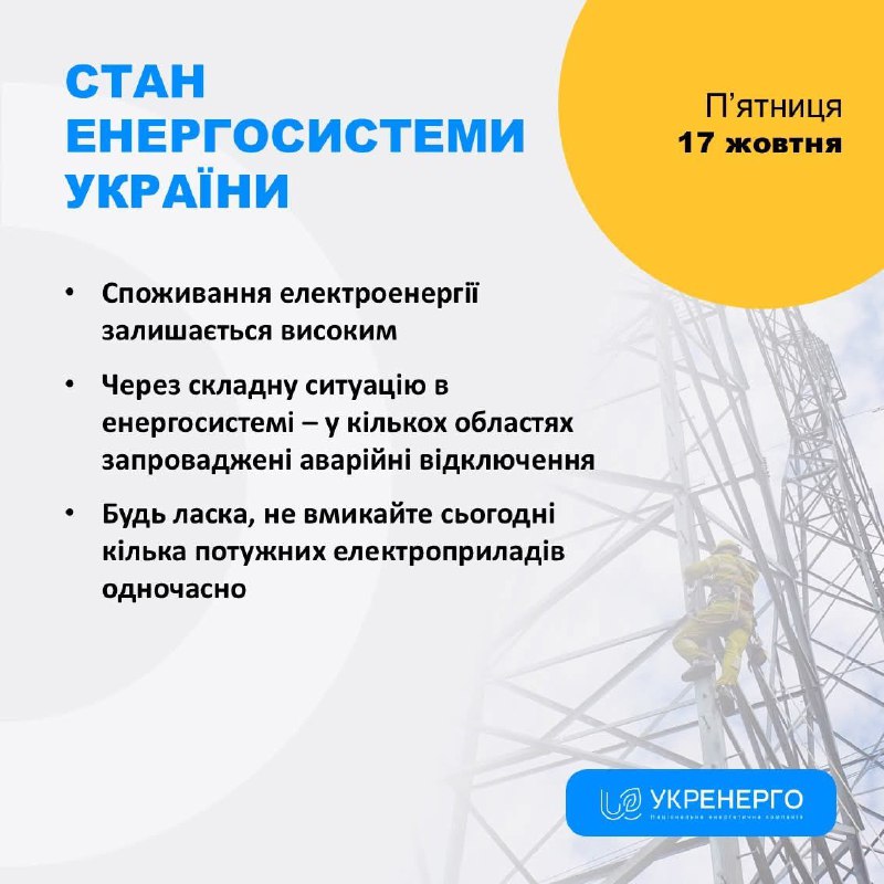 Увага! Ситуація в енергосистемі може змінюватись. Стежте за повідомленнями на сайтах та офіційних сторінках у соцмережах вашого оператора системи розподілу (обленерго).