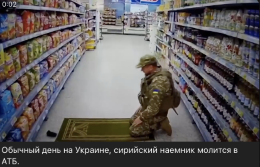 «Звичайний день в Україні», — так на пропагандистських ресурсах підписали відео, у якому так званий «сирійський найманець» буцімто здійснює намаз в торговельному залі «АТБ». Очікувано, російська аудиторія відреагувала на ролик шквалом расистських та ксенофобних зауважень.