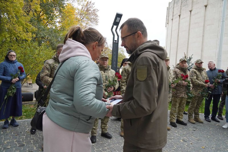 – зазначив він та вручив знак пошани «Захисник Луганщини» родинам полеглих Героїв: підполковника Валерія Солдатенка, старшого майстер-сержанта Анатолія Артеменка, штаб-сержанта Вадима Тертичного, старших сержантів Євгенія Зінченка та Віктора Кошеля, сержанта Романа Ступака.