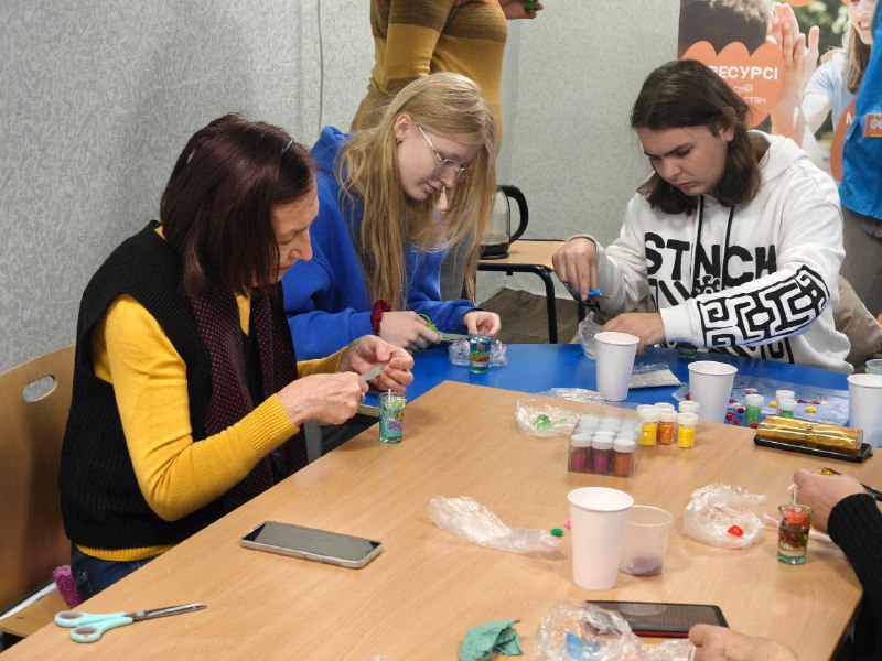 Учасники власноруч виготовляли гелеві свічки, додаючи у них улюблені кольори й аромати. Така творча робота допомагає зняти напругу, заспокоїтися й відчути внутрішній ресурс.