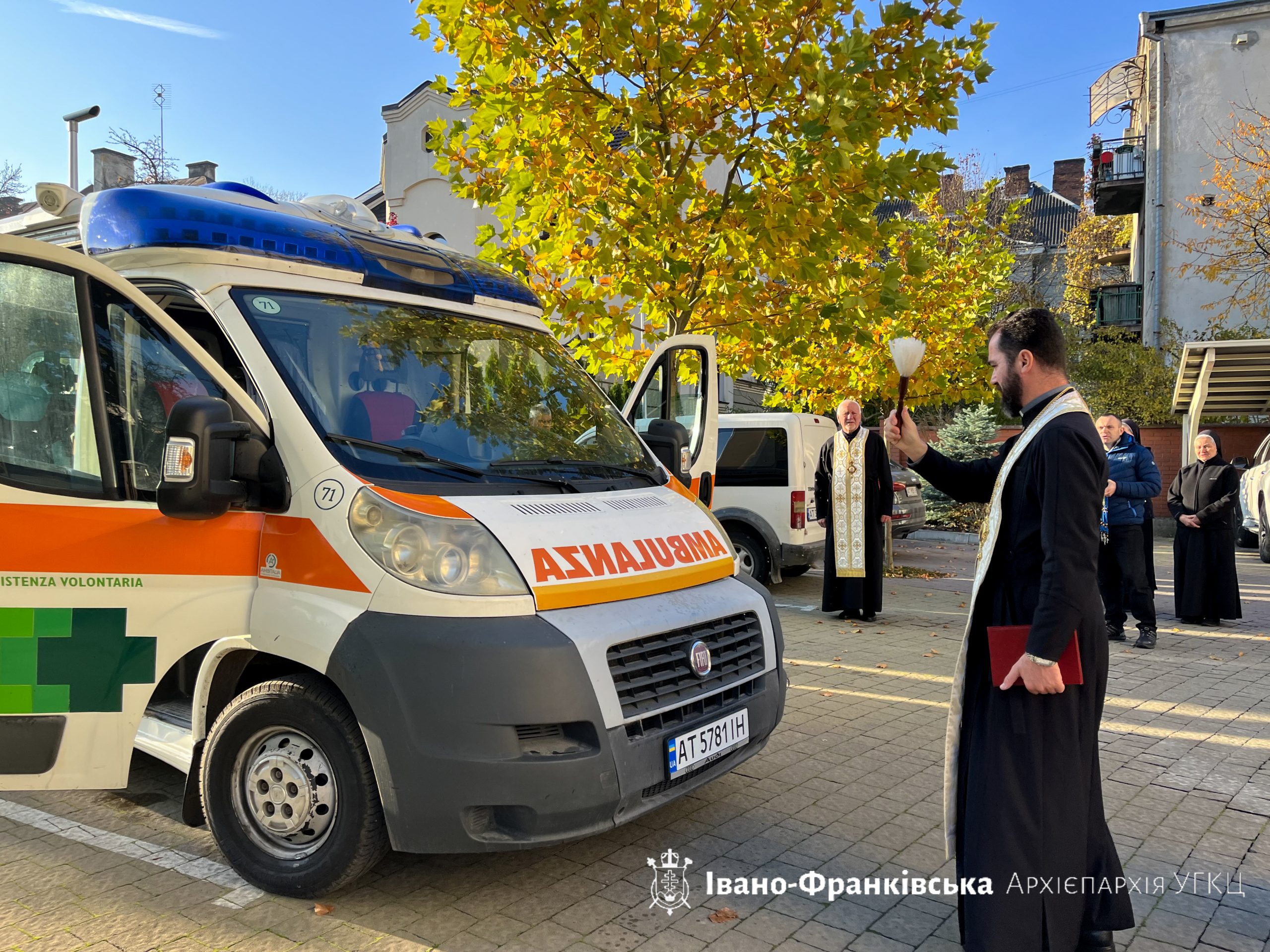 У середу, 22 жовтня, на подвір’ї храму Різдва Пресвятої Богородиці відбулося освячення чергової карети швидкої допомоги, яку Івано-Франківська Архієпархія УГКЦ передала для потреб українських Захисників. Чин освячення здійснив Архієпископ і Митрополит Івано-Франківський Владика Володимир Війтишин у співслужінні Владики Миколи Семенишина, Єпископа-помічника Івано-Франківської Архієпархії.