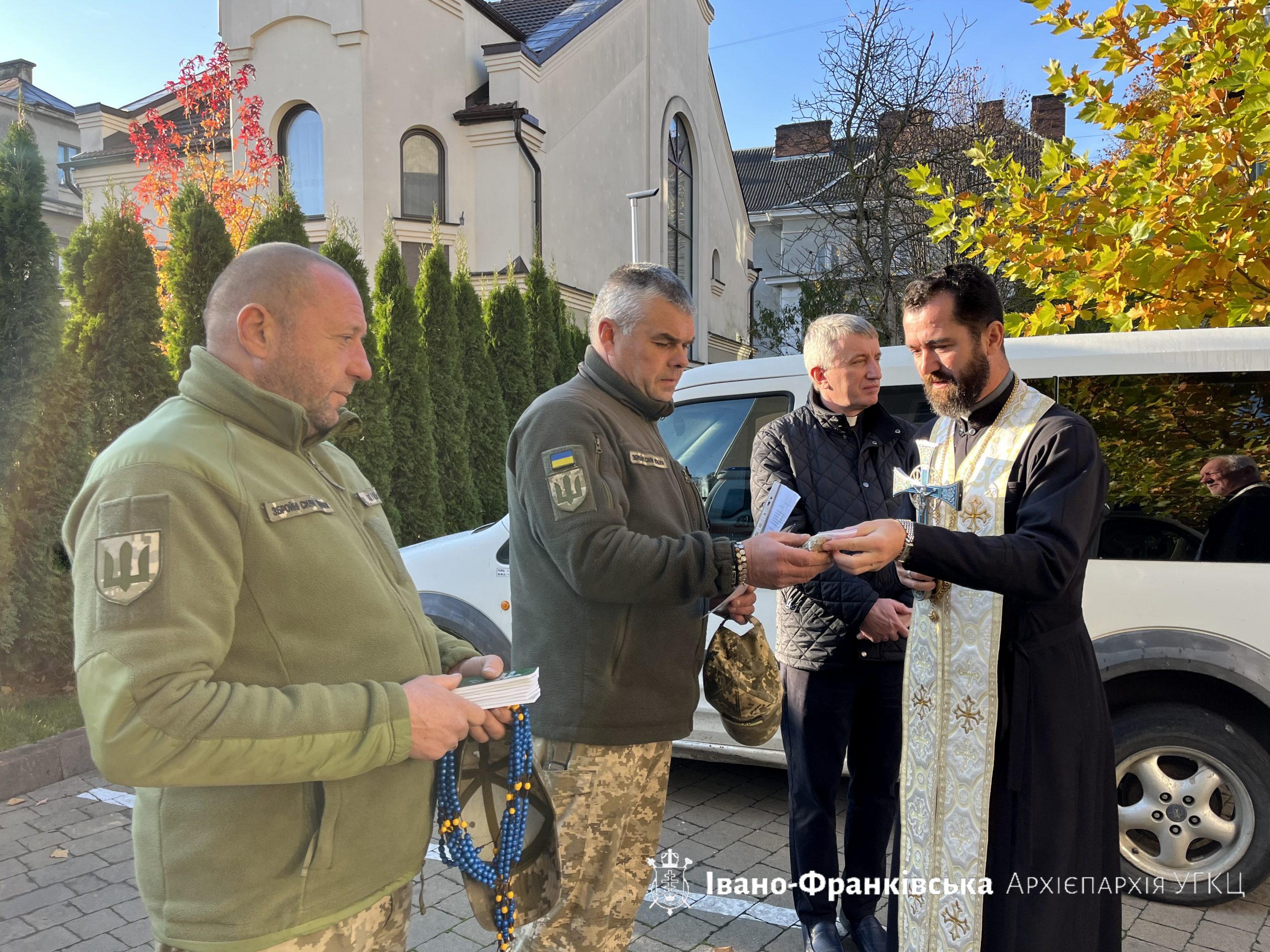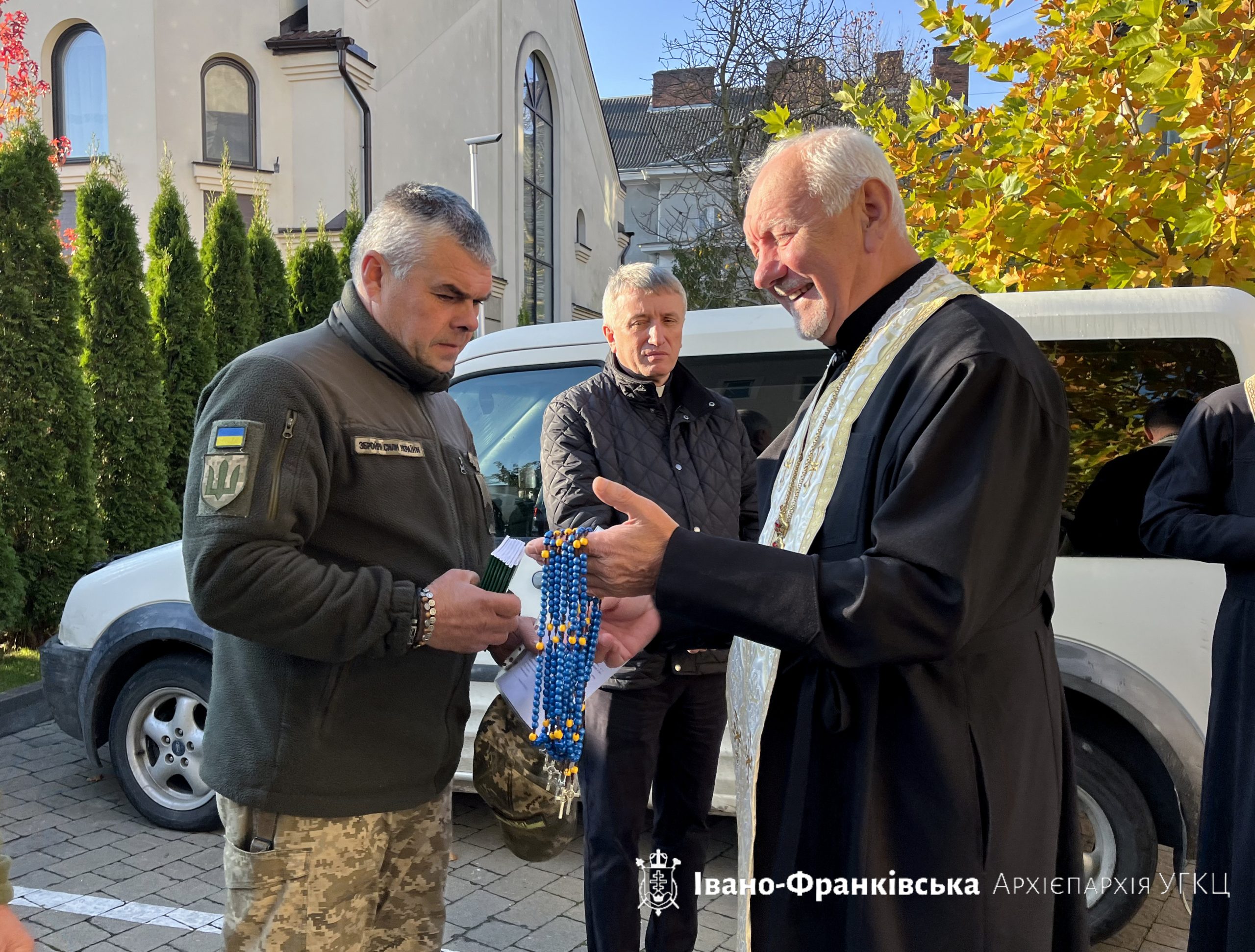 На завершення Владика Володимир поблагословив присутніх освяченою водою, а також передав для Воїнів вервиці, медальйони та молитовники — як духовну зброю й знак Божого захисту.