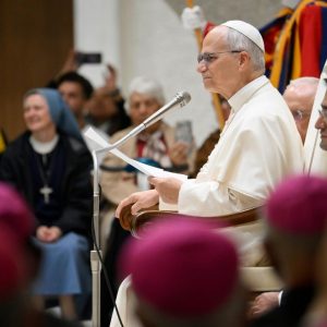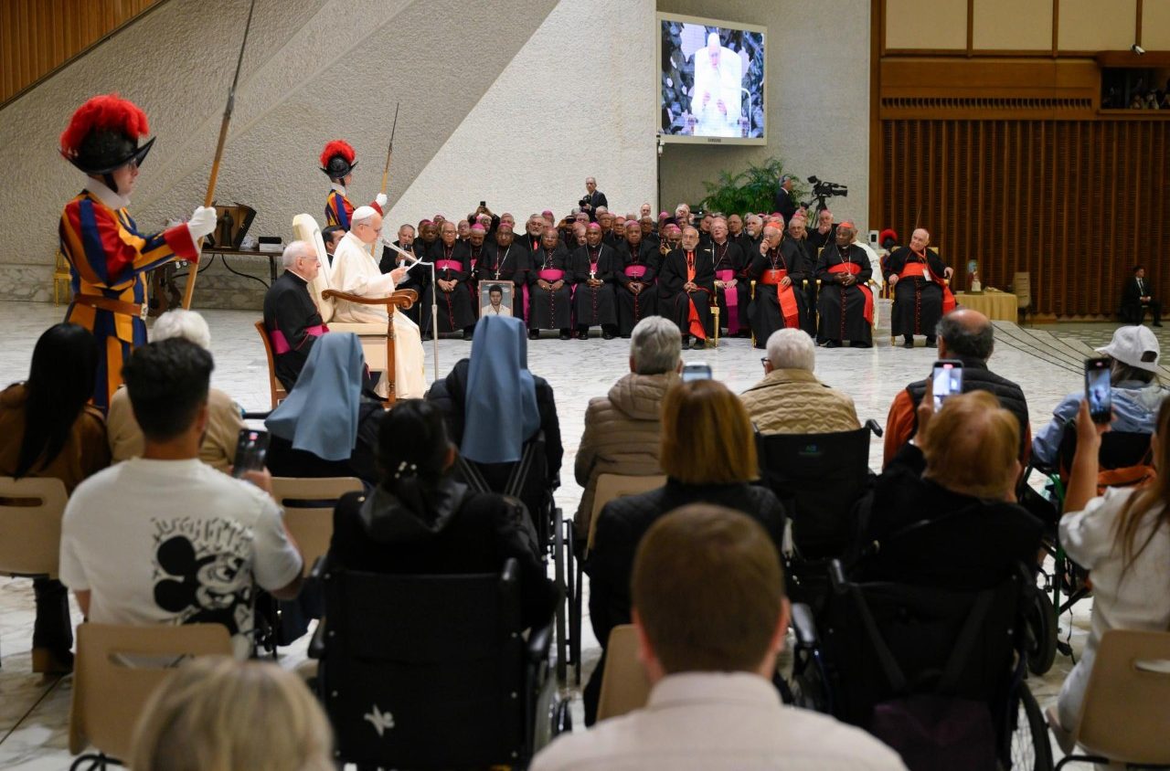 Як зазначив Святіший Отець, вітаючись з ними, ця радісна й урочиста подія «нагадує нам, що церковне сопричастя охоплює всіх вірних у часі та просторі, кожної мови та культури, об’єднуючи нас як Божий люд, Христове тіло та живий храм Святого Духа». «Чоловіки та жінки, яких ми вчора проголосили святими, є для всіх нас яскравими знаками надії, бо вони пожертвували своїм життям в ім’я любові до Христа та ближніх», – сказав він.