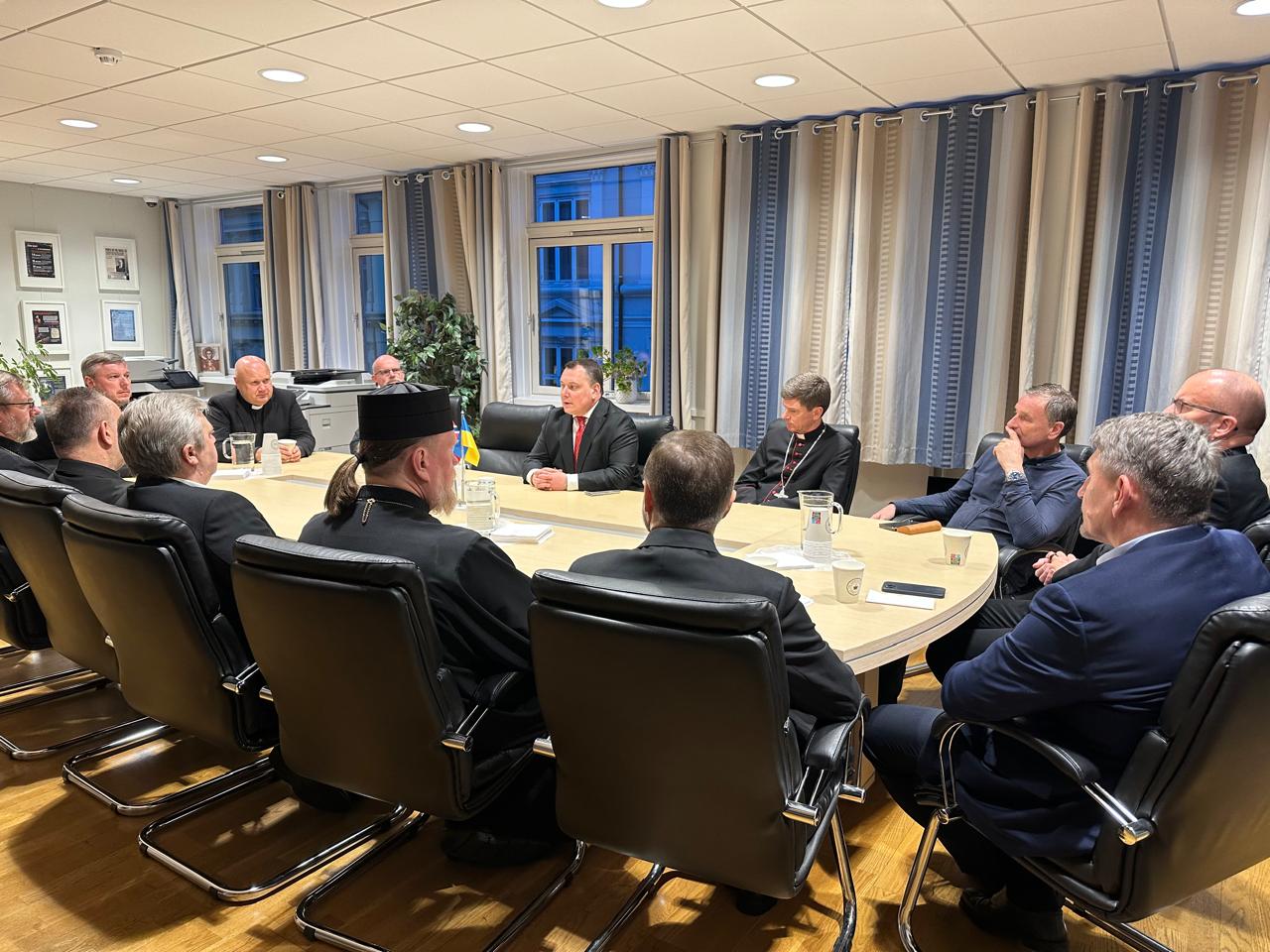 Делегація Всеукраїнської ради Церков і релігійних організацій, яка перебуває з офіційним візитом у Норвегії, відвідала Посольство України, де зустрілася з послом Олексієм Гавришем. Під час зустрічі Отець і Глава УГКЦ Блаженніший Святослав висловив глибоку вдячність послу України в Королівстві Норвегія за його увагу та підтримку місцевої української громади.