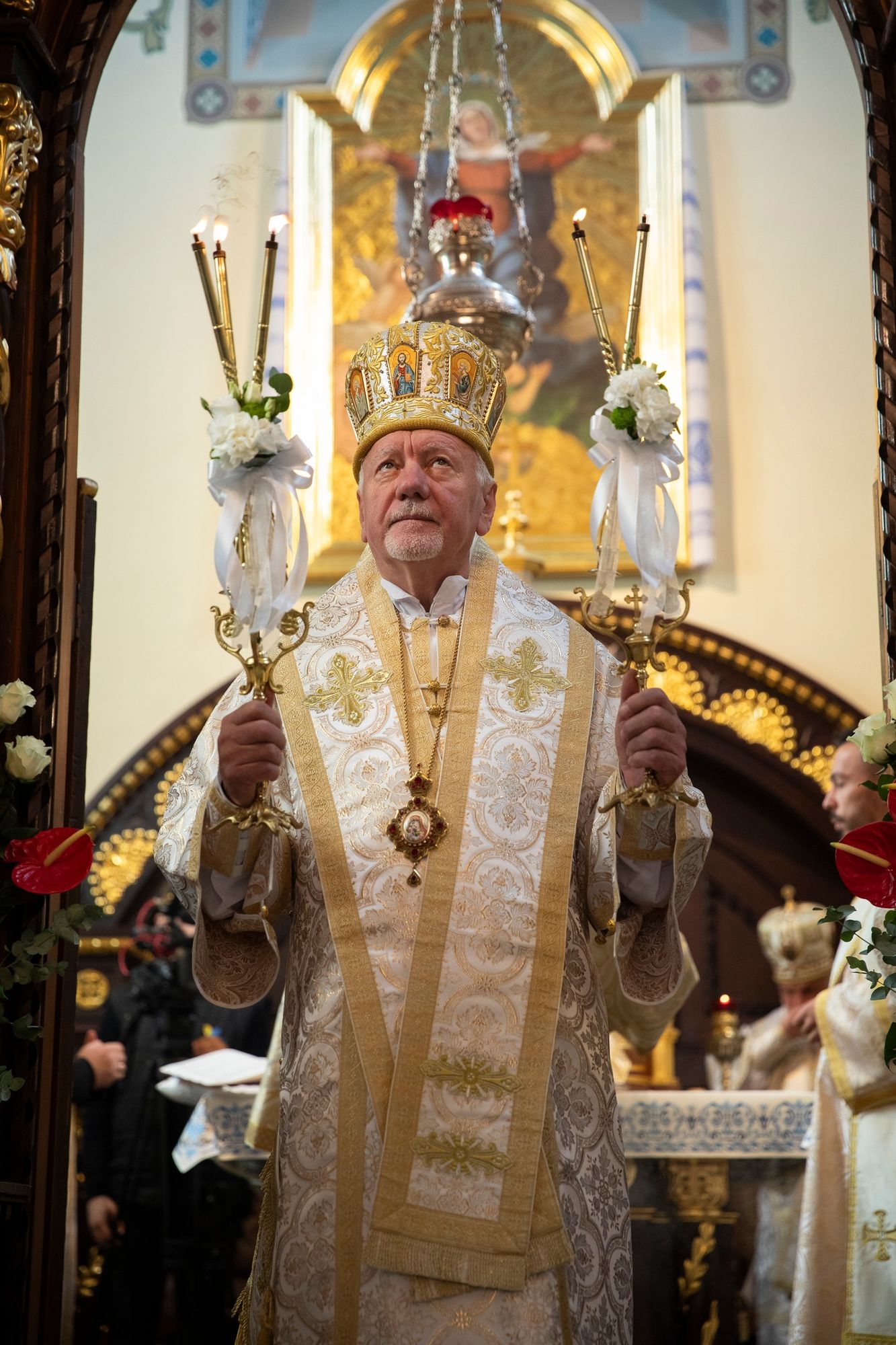 Дякуючи Владиці Тарасові Сеньківу за вірне служіння й батьківську присутність, Предстоятель пригадав його шлях поруч із першим єпископом Єпархії — світлої пам’яті Владикою Юліаном Ґбуром. Спочатку Єпископ Тарас служив йому як помічник, а відтак був призначений Апостольським адміністратором: «Багато хто тоді запитував: „Він є той, що має прийти, чи іншого нам чекати?“. Але Синод Єпископів побачив, що це той муж, через якого апостольська сила ранньої Церкви хоче торкнути свій народ. Дякую, владико Тарасе, що ви є тим „грядущим“ у сьогоднішньому житті й історії нашого народу. Ви є тим батьком, який огортає своїх священників, монахів, монахинь, мирян у такий непростий час».