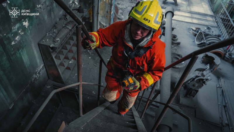 🧗♂️Верхолази аварійно-рятувального загону спеціального призначення м. Біла Церква продовжують ліквідовувати наслідки чергових російських атак на інфраструктуру Київщини