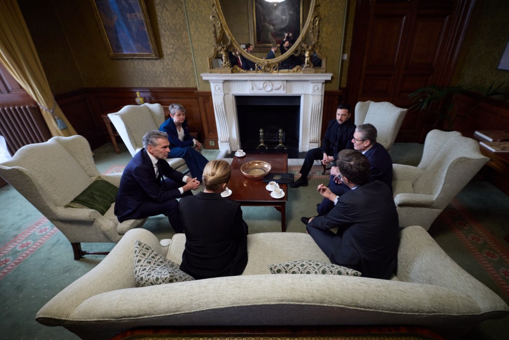 Президент України Володимир Зеленський, Прем’єр-міністр Великої Британії Кір Стармер, Президент Франції Емманюель Макрон (онлайн), Прем’єр-міністерка Данії Метте Фредеріксен, Прем’єр-міністр Нідерландів Дік Схооф і Генеральний секретар НАТО Марк Рютте провели зустріч перед початком засідання Коаліції охочих у Лондоні.