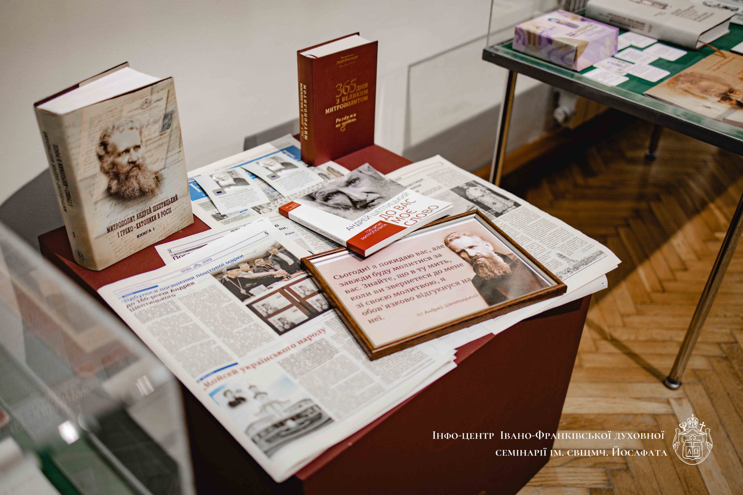 Під час заходу присутні мали нагоду ознайомитися з автентичними фотографіями, листами та антимінсами Митрополита Андрея Шептицького.