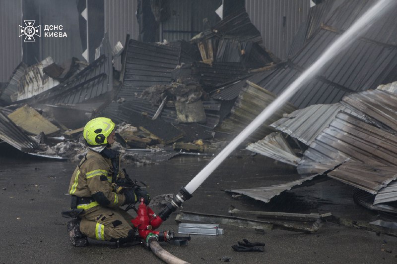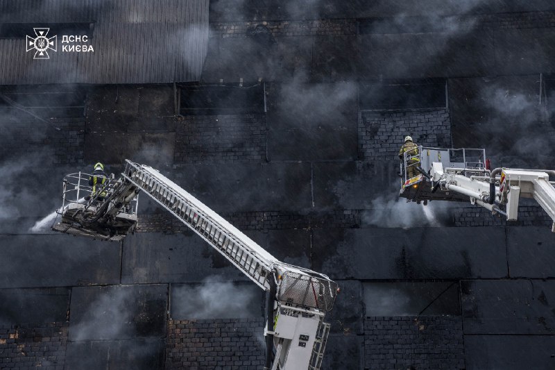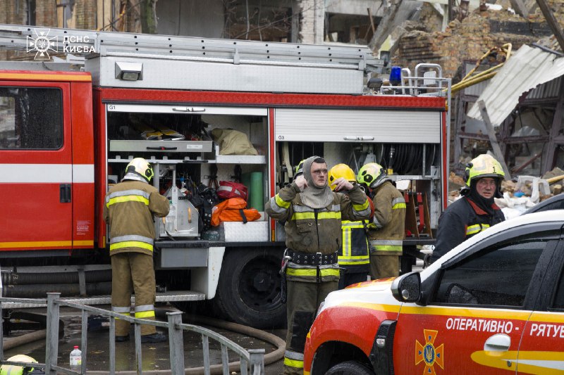 Рятувальники продовжують ліквідовувати пожежі та розбирати завали після чергового обстрілу столиці з боку росії.