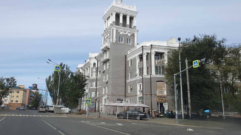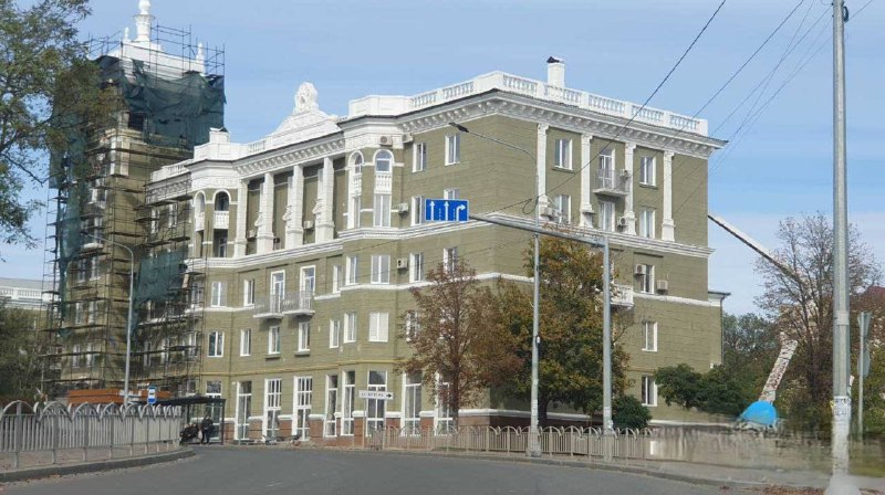 ☝️У 2024 році російська окупаційна адміністрація "відновила" історичні будівлі, які російська армія обстріляла під час блокади міста. Підрядники усе зробили нашвидкоруч: ліпнину зняли, а фасади покрили дешевою фарбою.