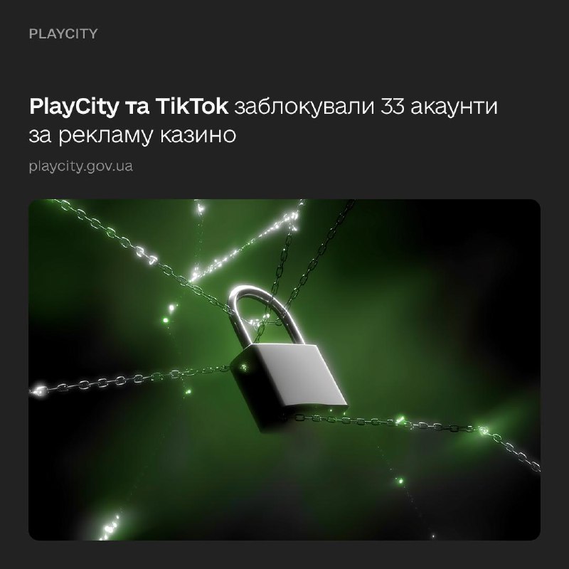 🌐 PlayCity заблокувало 33 TikTok-акаунти за незаконну рекламу азартних ігор