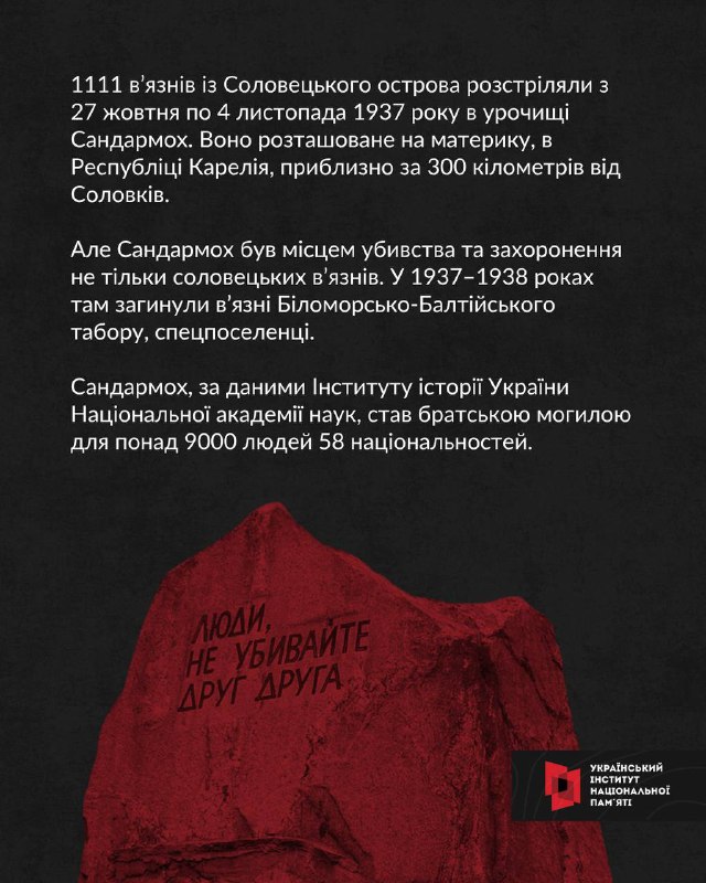 САНДАРМОХ І СОЛОВКИ Ці назви завжди будуть відгукуватися в історичній памʼяті українців