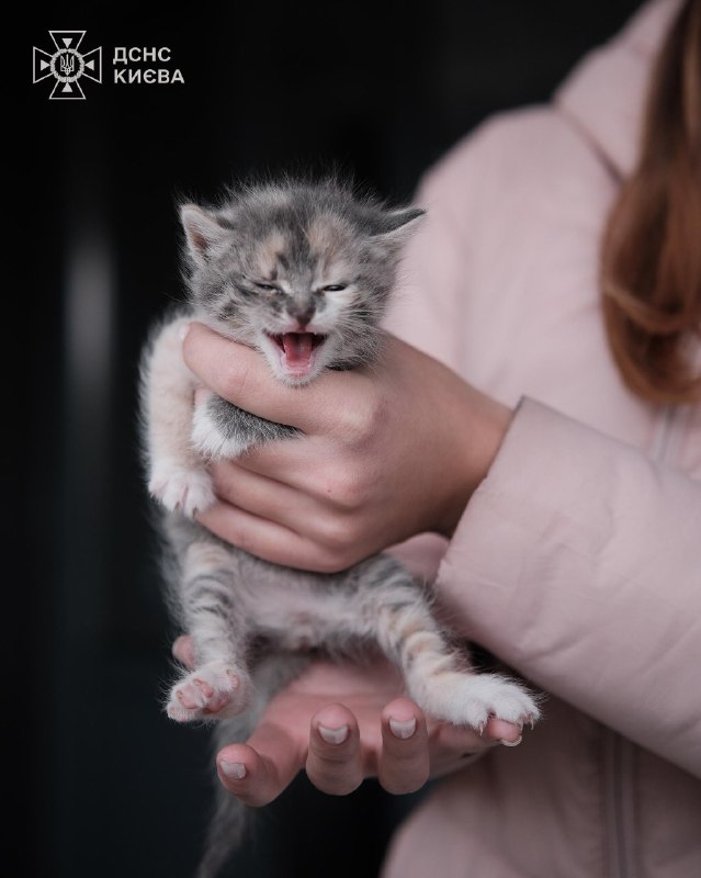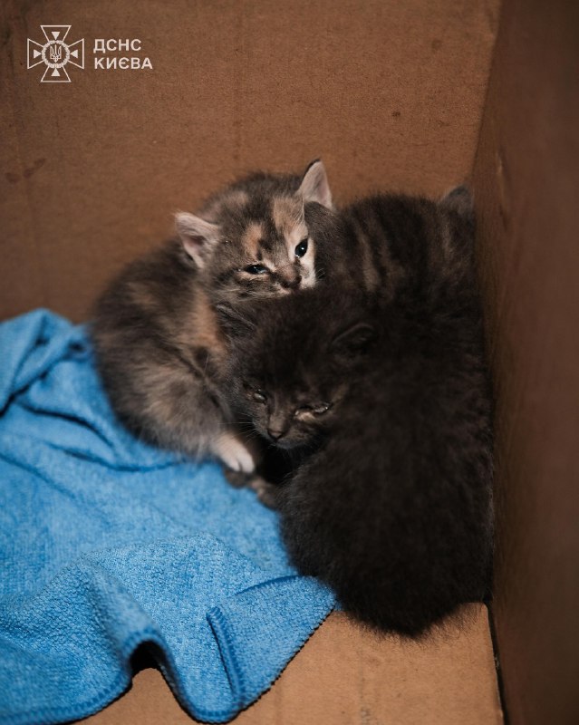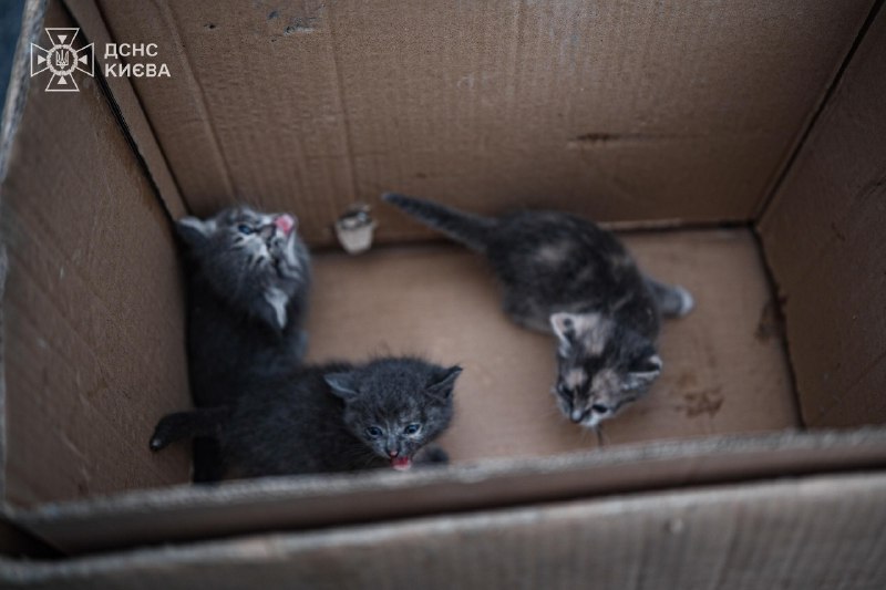 🐱Троє маленьких кошенят, яких київські рятувальники виявили на місці однієї з пожеж після російської атаки по столиці, знайшли дім