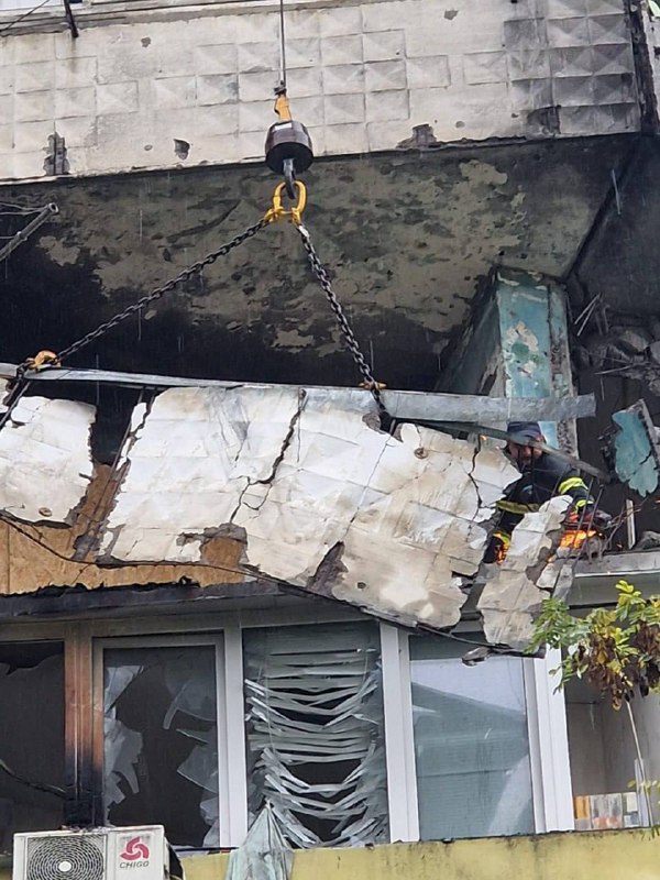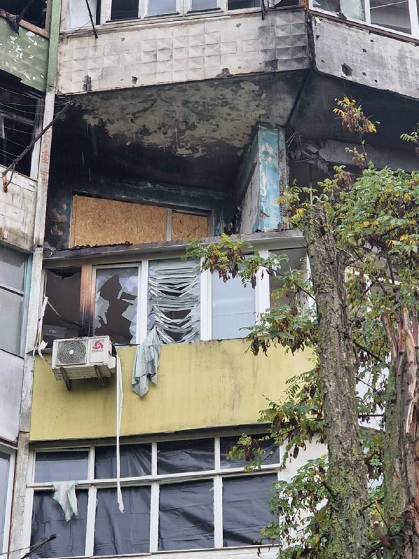 Один з ворожих снарядів влучив у багатоповерхівку, пошкодивши залізобетонну конструкцію, яка могла обвалитись на людей.