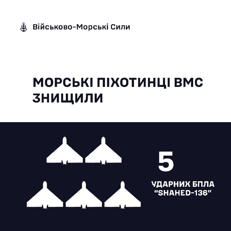 🇺🇦⚓ Морські піхотинці ВМС ЗС України знищили 5 «Шахедів» Військово-Морські Сили Збройних Сил України разом… 30.10.2025, Четвер | 11:11 Автор допису: Військово-Морські Сили Збройних Сил України 🇺🇦⚓ Морські піхотинці ВМС ЗС України знищили 5 «Шахедів» Військово-Морські Сили Збройних Сил України разом із підрозділами інших складових Сил оборони продовжують знищувати ворога на землі, в морі і повітрі! Разом до перемоги!Слава Україні! Джерело Друк / PDF